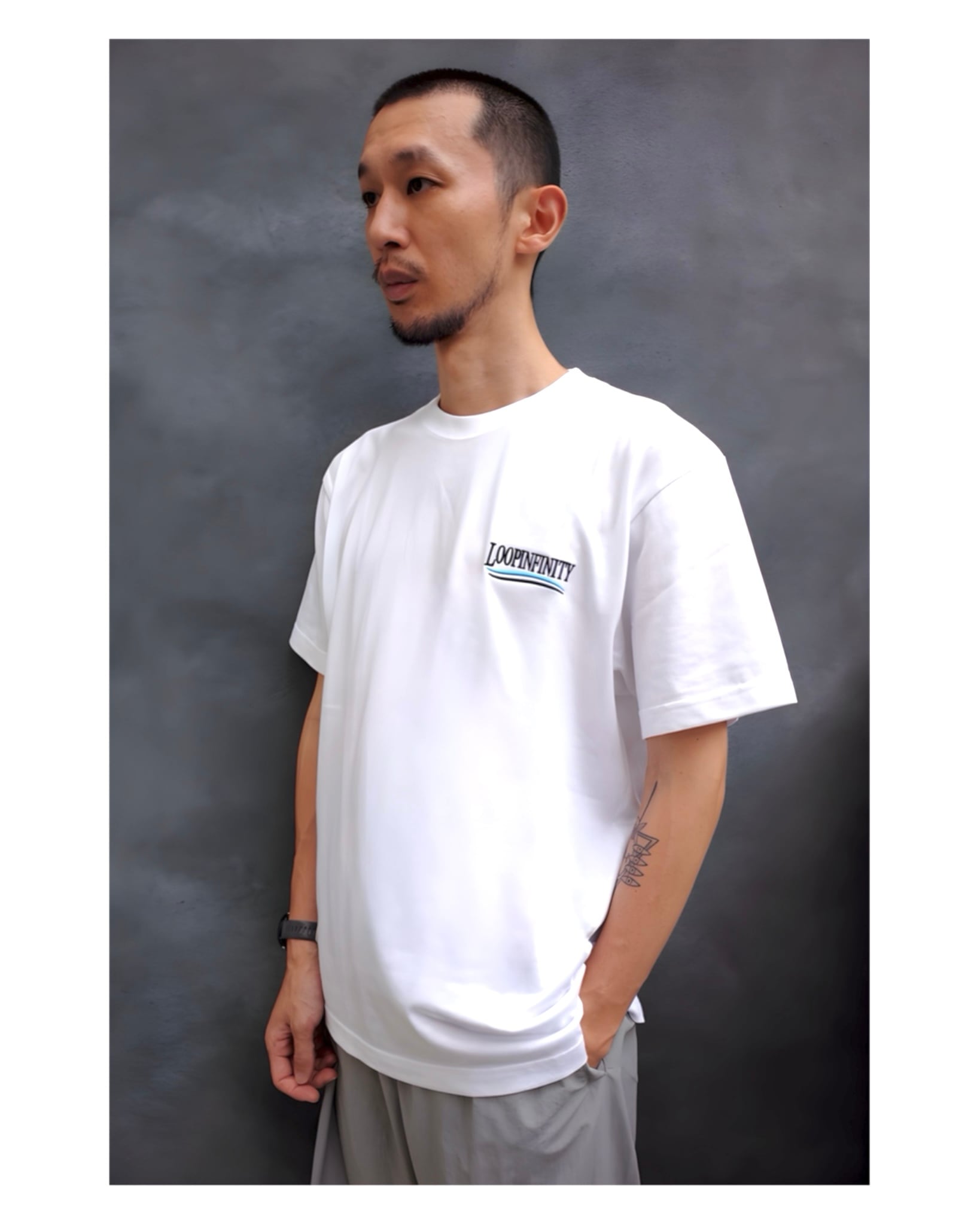 どんなスタイリングにも自然に馴染むホワイトの刺繍Tシャツ。グレートーンのパンツやデニムに合わせて、無駄のない都会的なコーディネートに。ショーツ×キャップでまとめれば、軽やかなサマースタイルにも。男女問わずフィットする、着回し力の高い一着です。