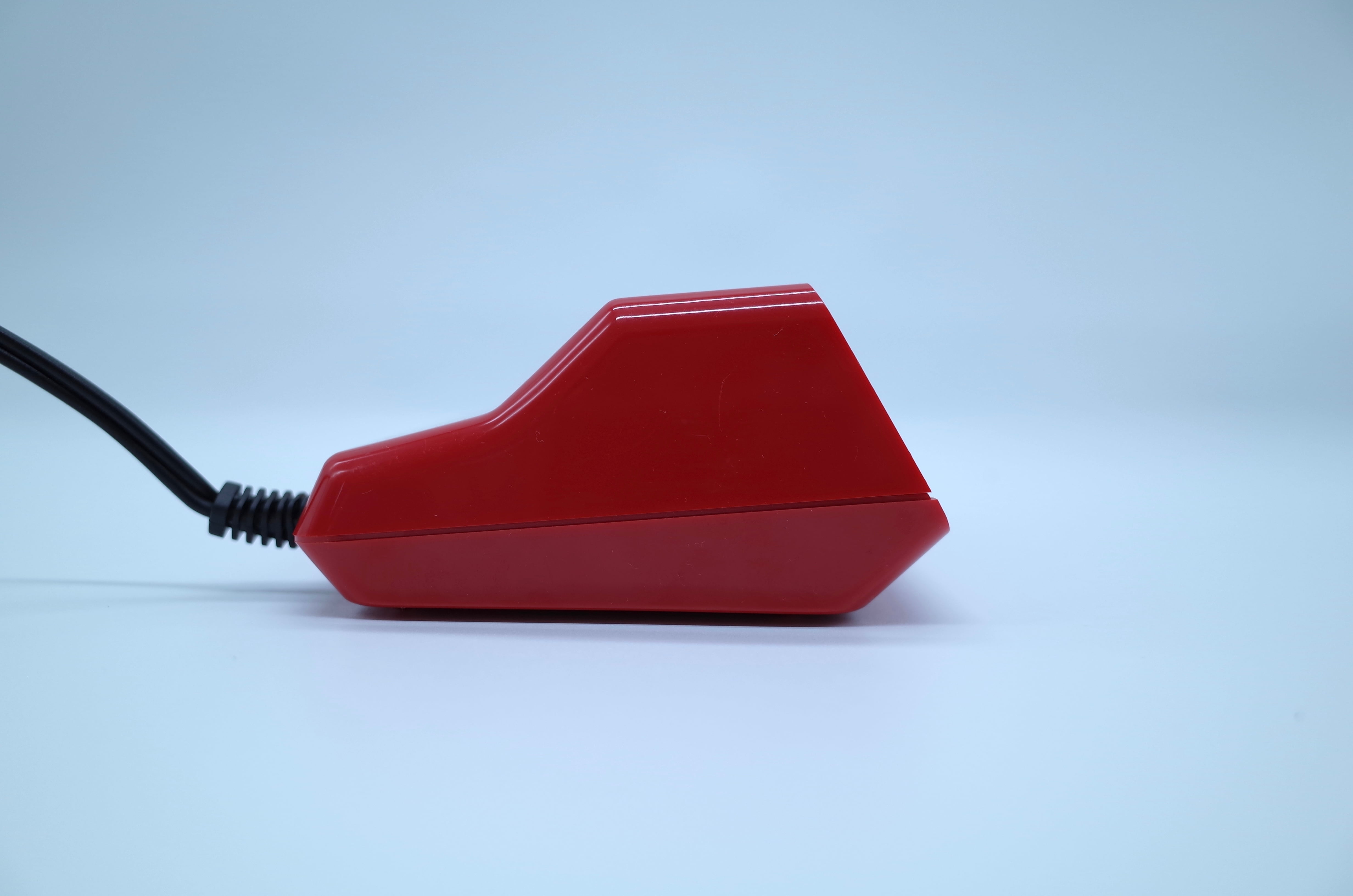 直線的なプロポーションと鮮烈なレッドカラーが印象的な、CITIZEN製のデジタル置時計。
