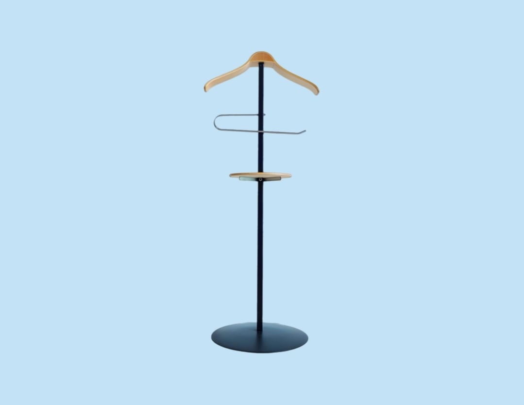 ※ バレット(Valet)とは主人のお世話をする者を指します。 ジャケットを掛けるハンガーに加え、タイを掛けたりカフリンクスを置いたり、まさに”Valet”のようにお出かけの準備をサポートしてくれます。時計やアクセサリーなどを置けるスペースもついています。