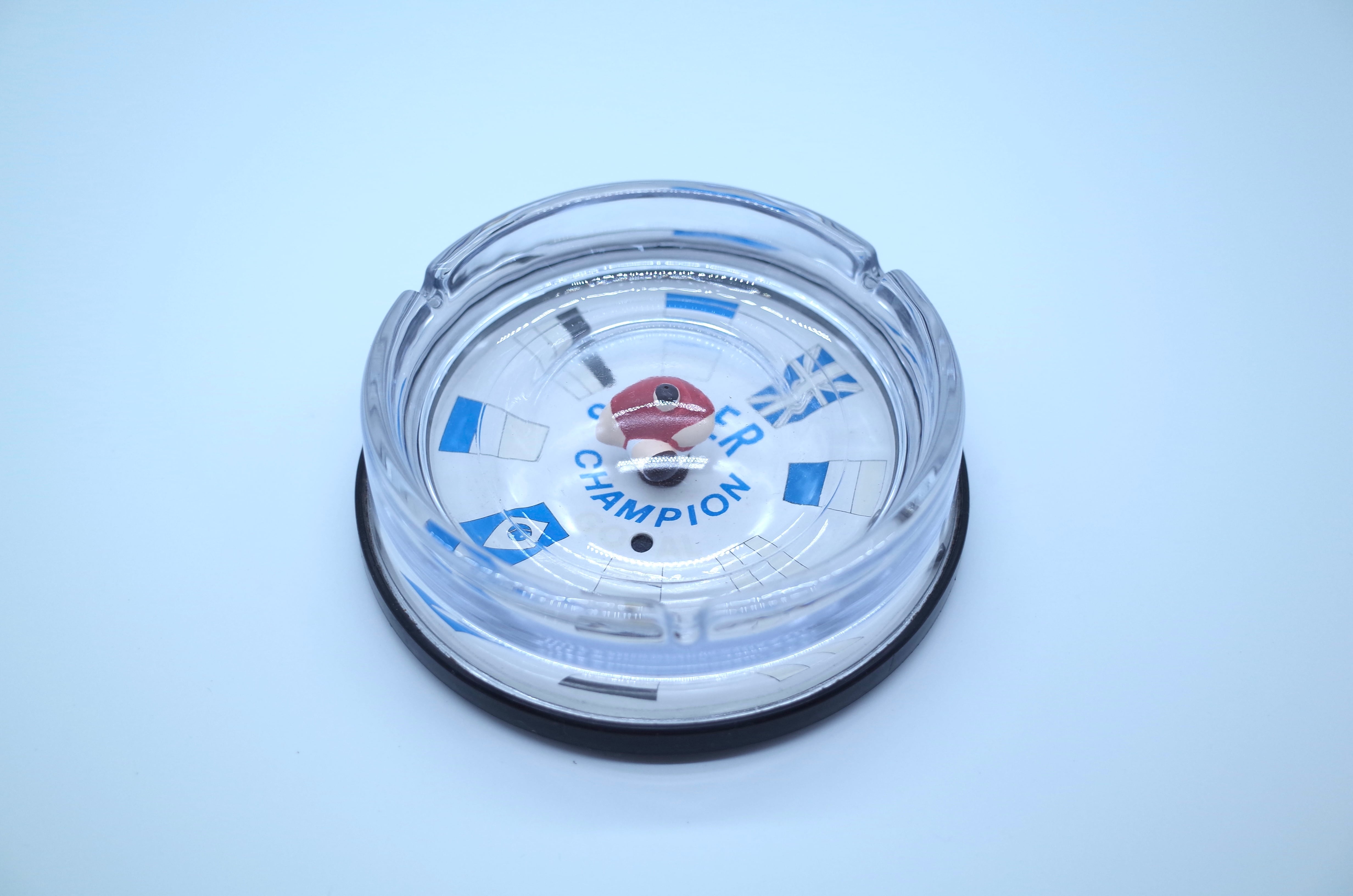 中央には小さなサッカーボールがセットされており、転がして遊べる仕掛け付き。単なる灰皿としてだけでなく、アクセサリートレイや鍵置きなど日常使いにも対応できる遊び心あるプロダクトです。