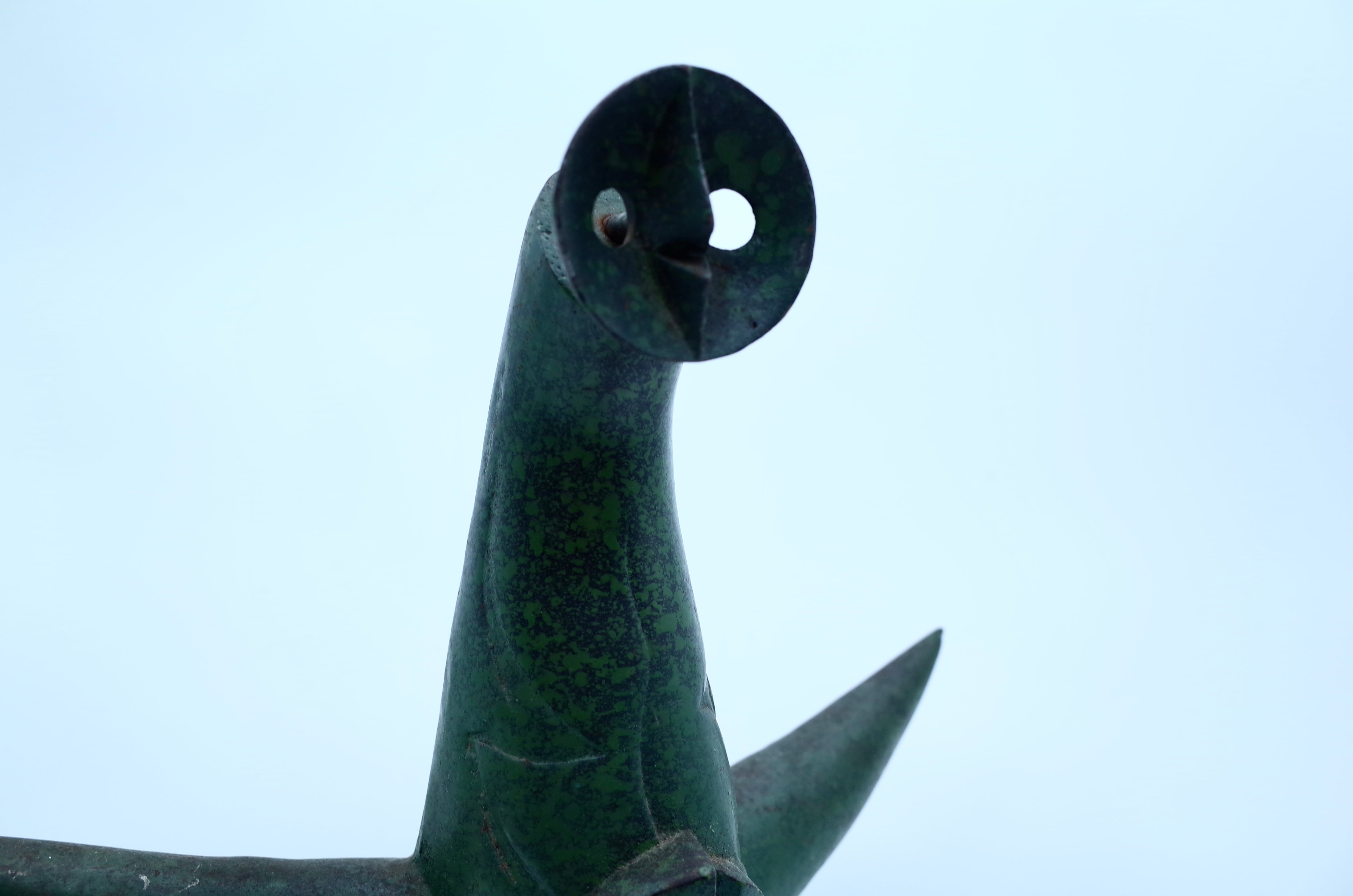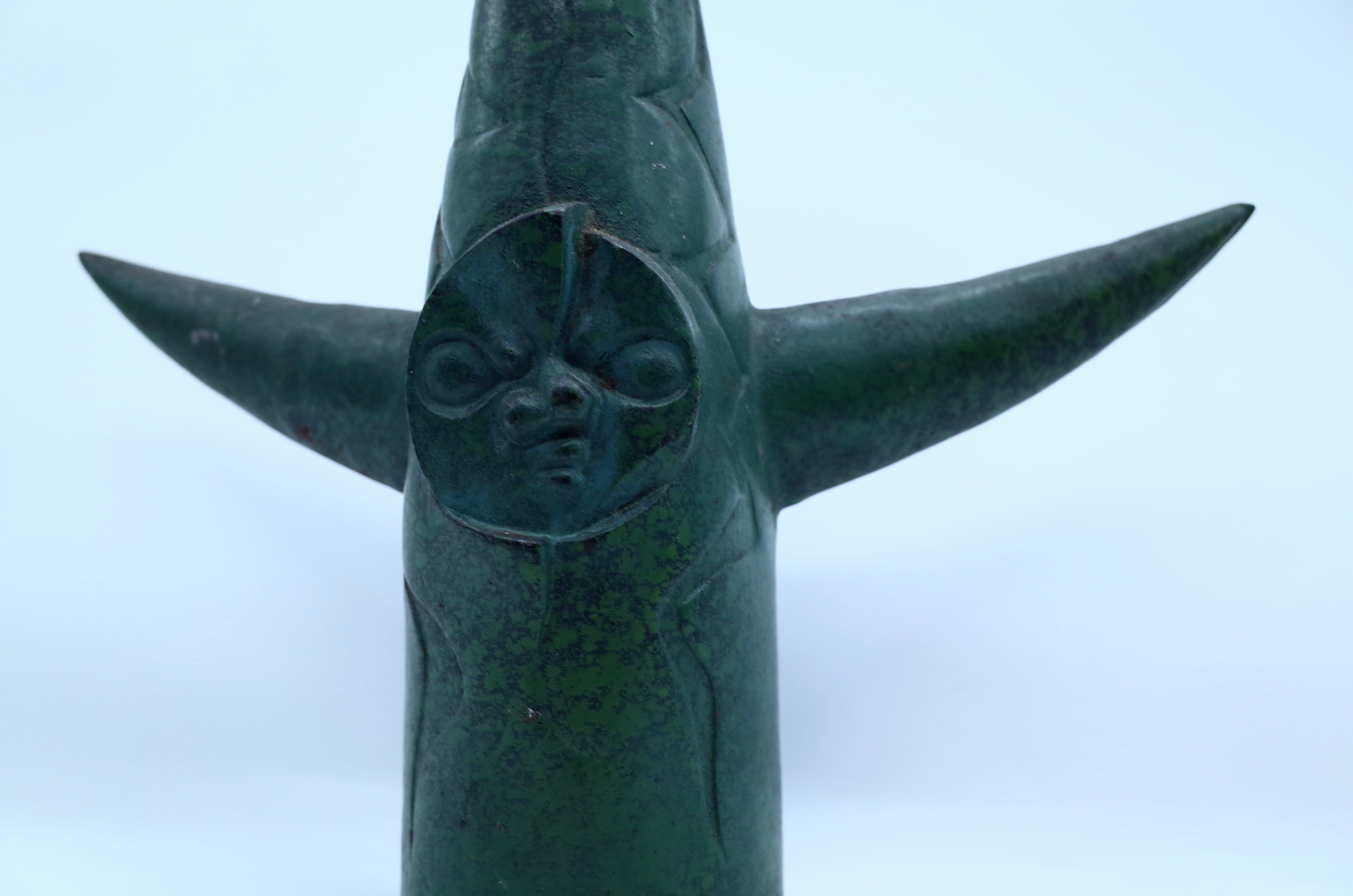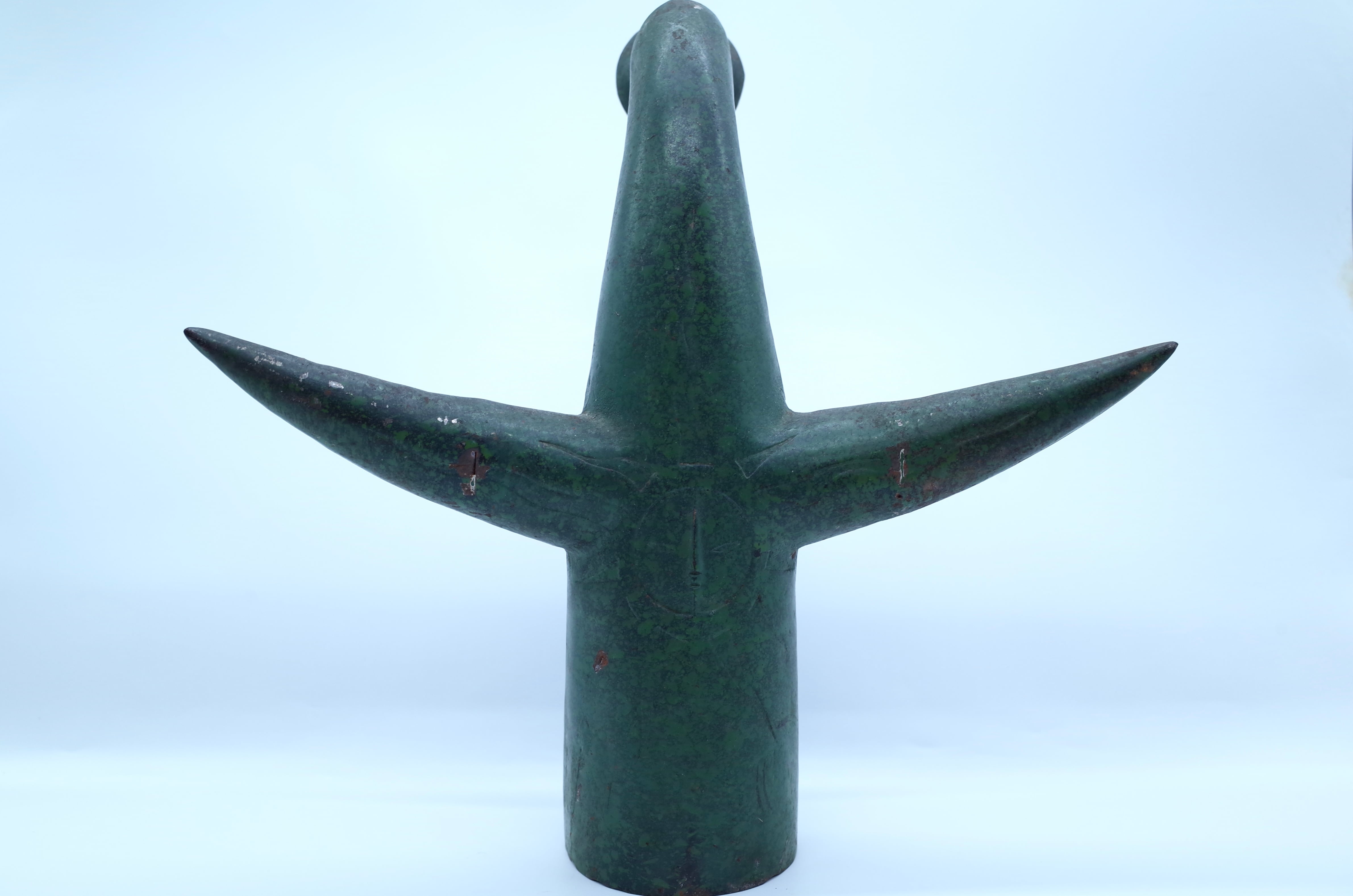 金属製(鉄系素材)による重量感のあるモデルで、酸化によるサビと緑青が共存する独特の経年変化は、鉄素材特有の美しさとしてこの一点に刻まれています。