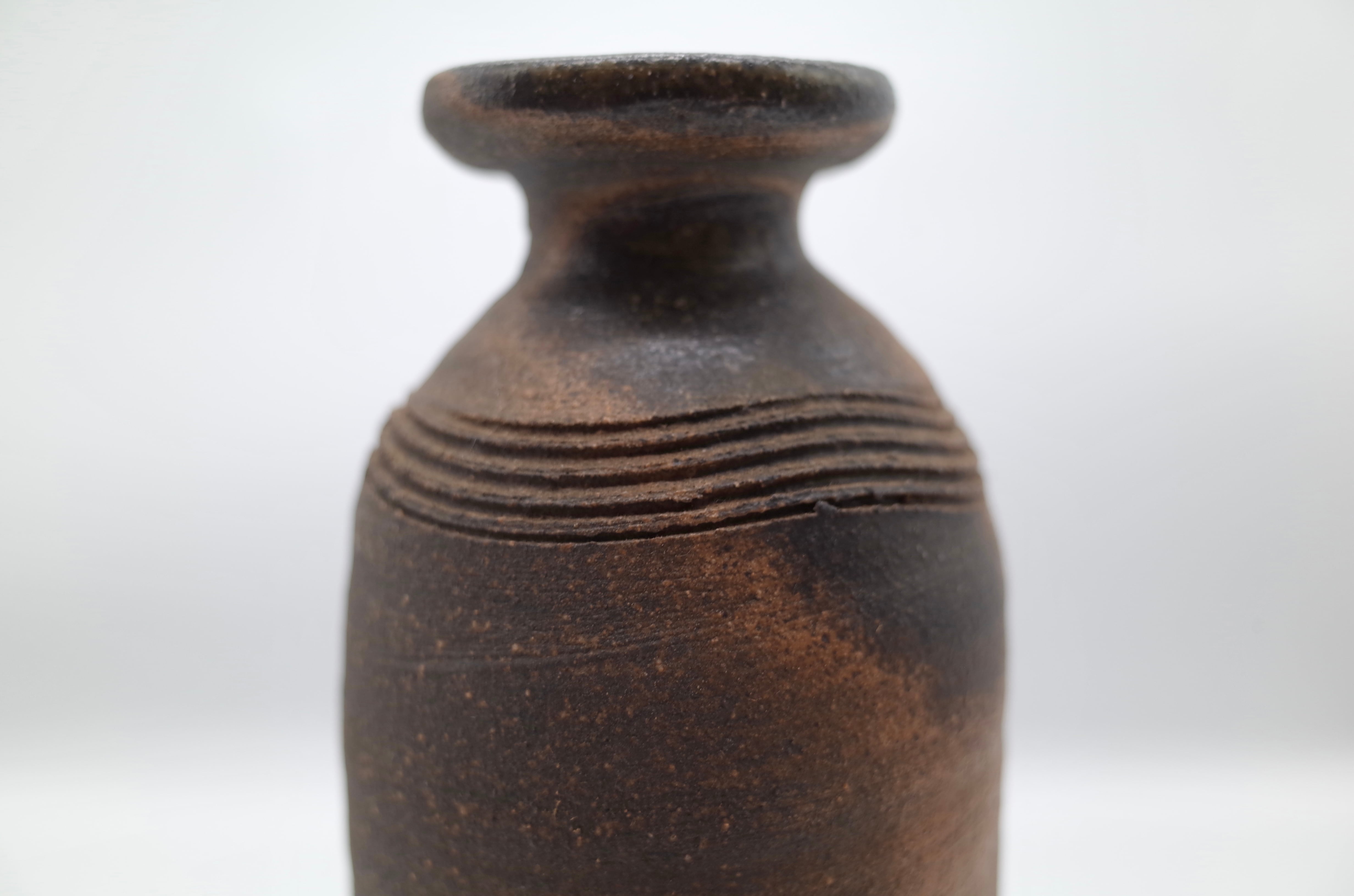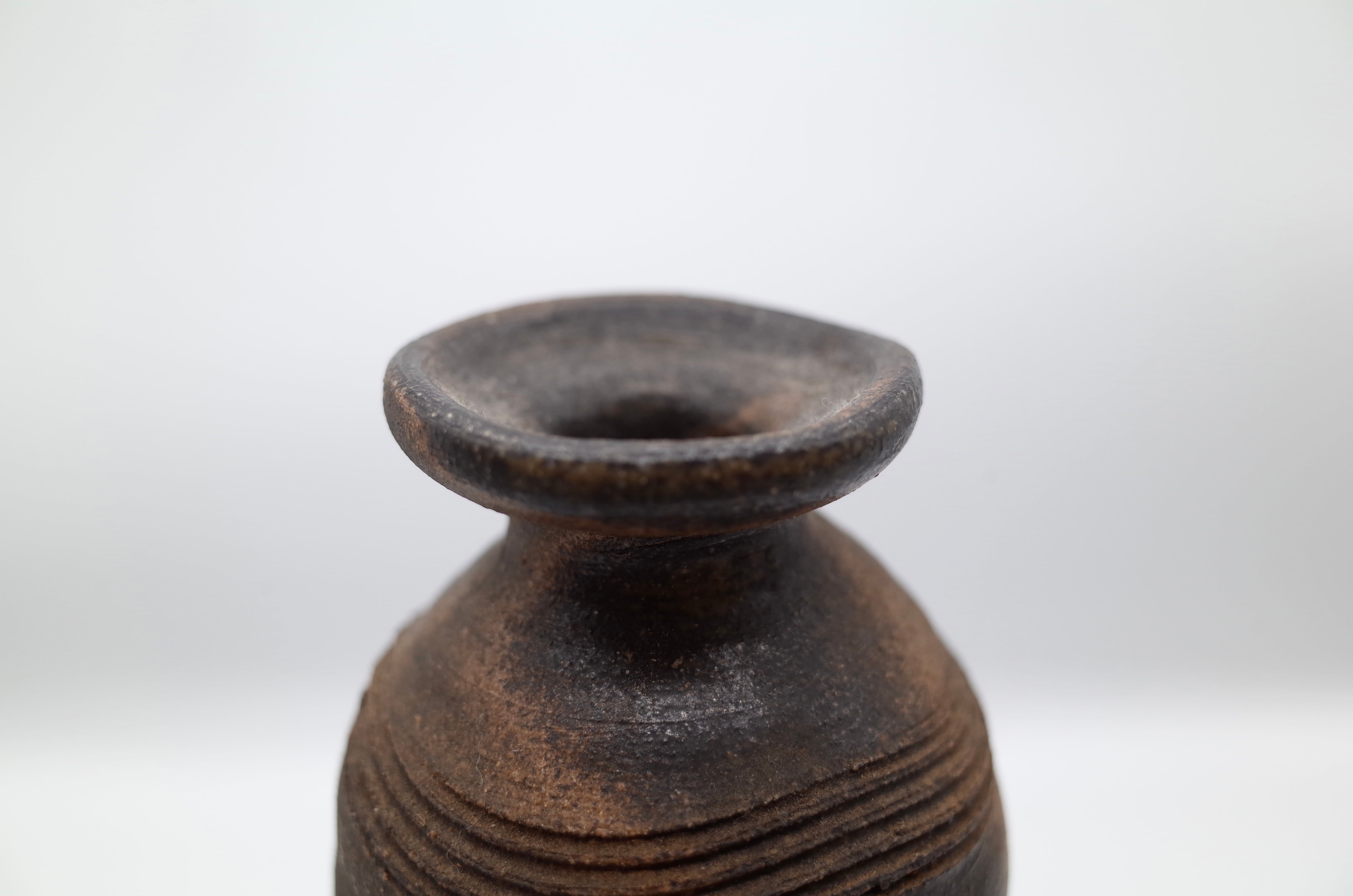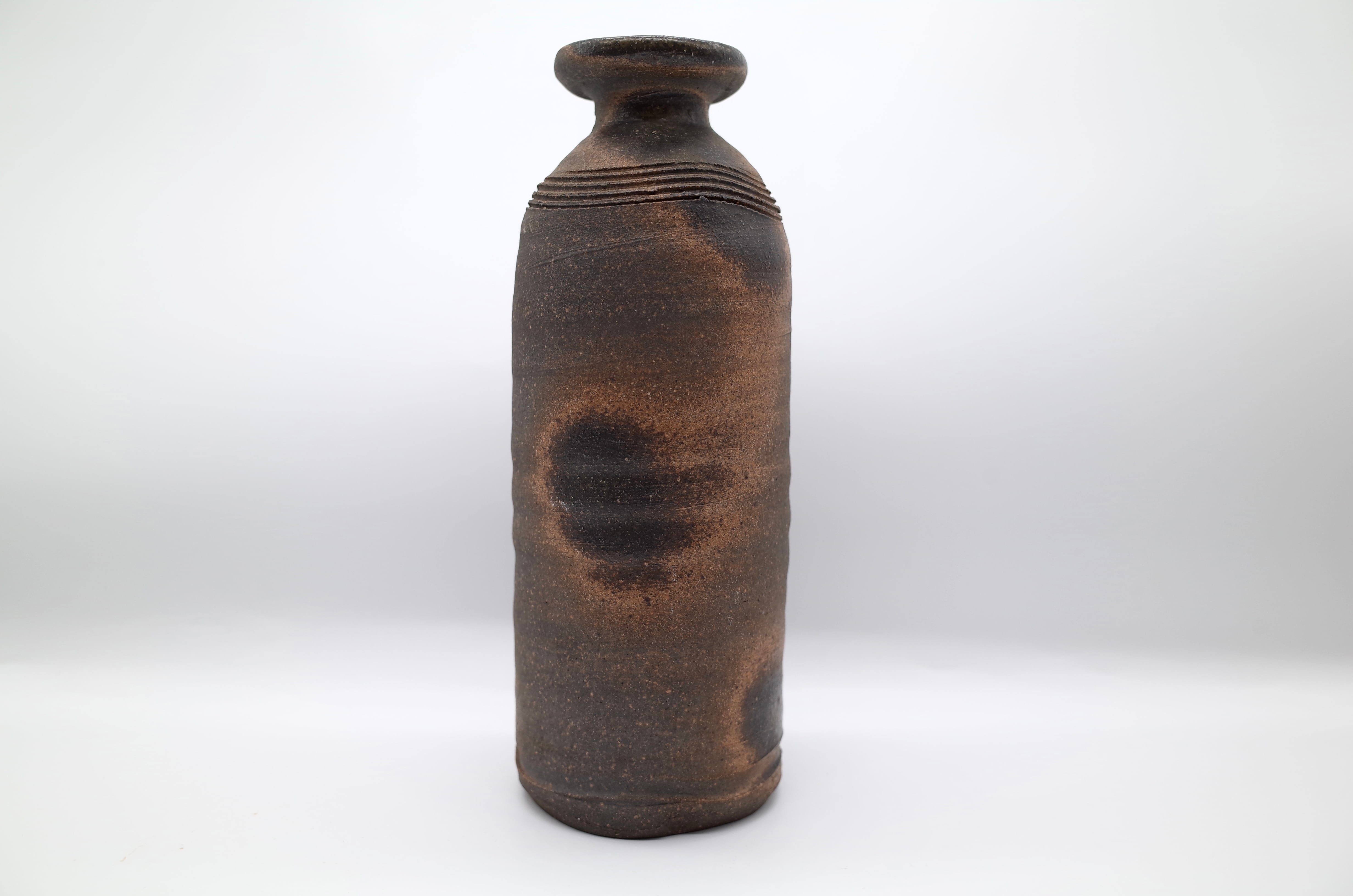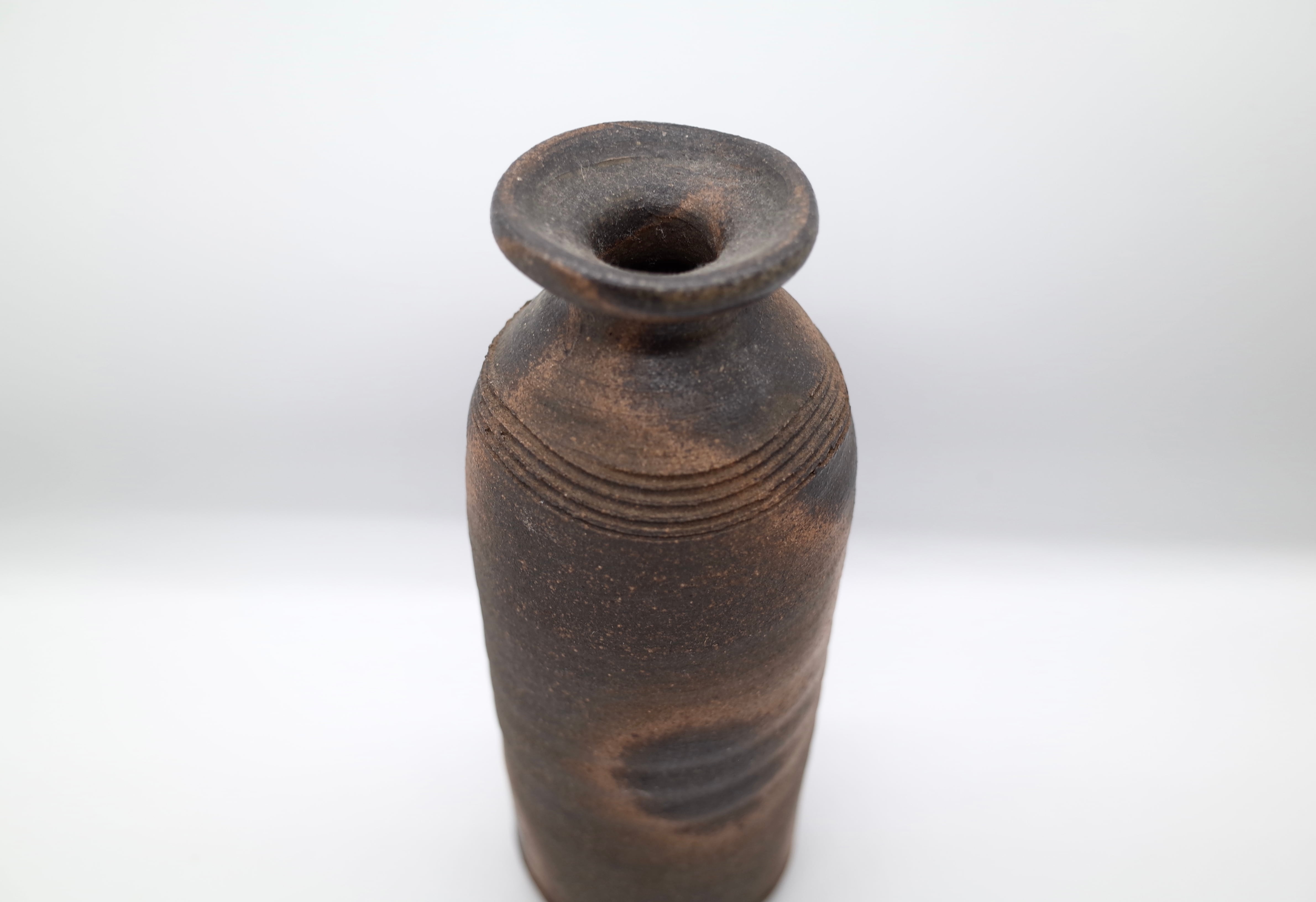 焼締めによる焦げ色や、炎の跡が生んだグラデーションが美しい備前焼の花器。