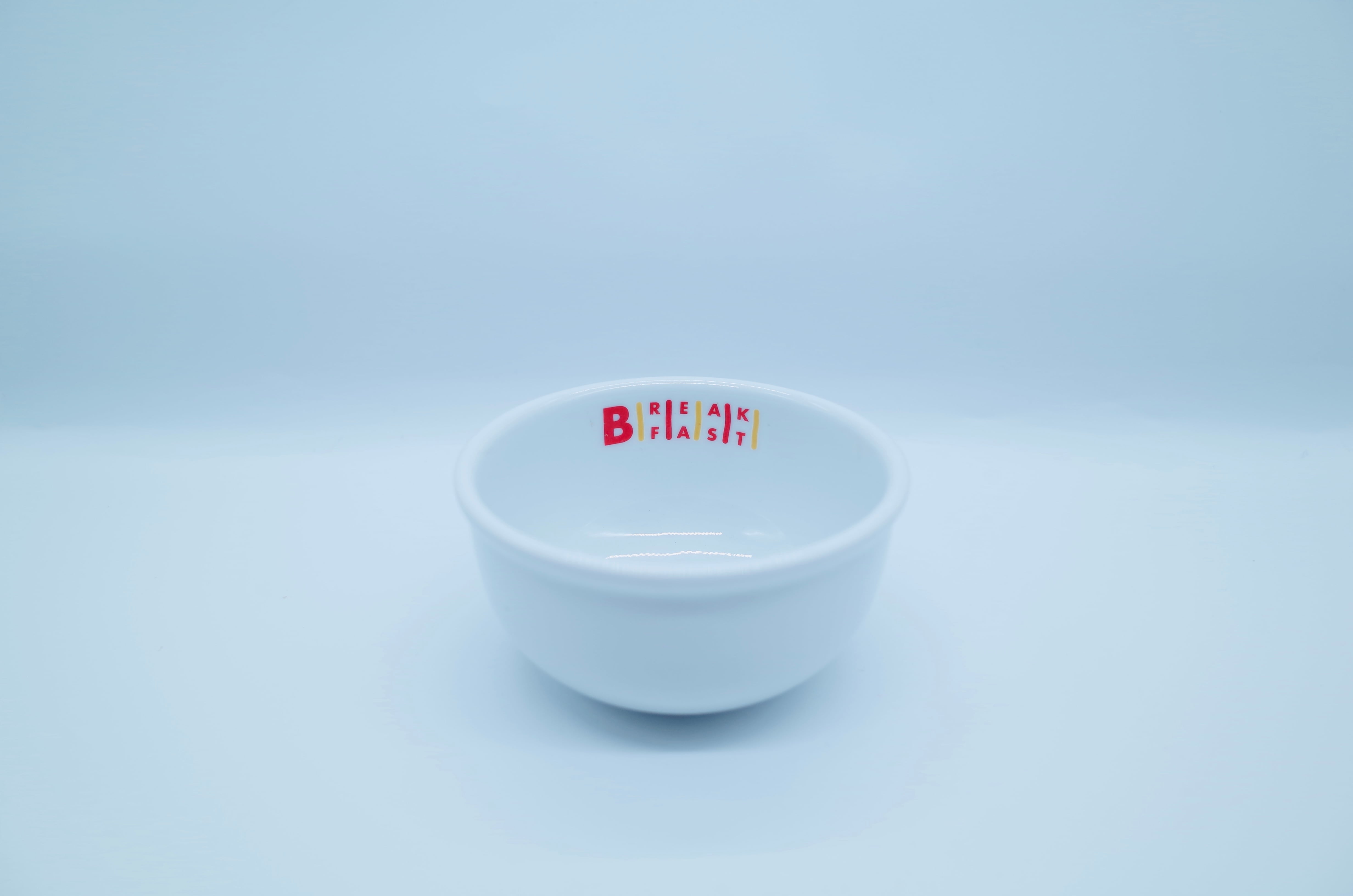 朝食をテーマにしたタイポグラフィがアクセントになった、小ぶりなボウル。