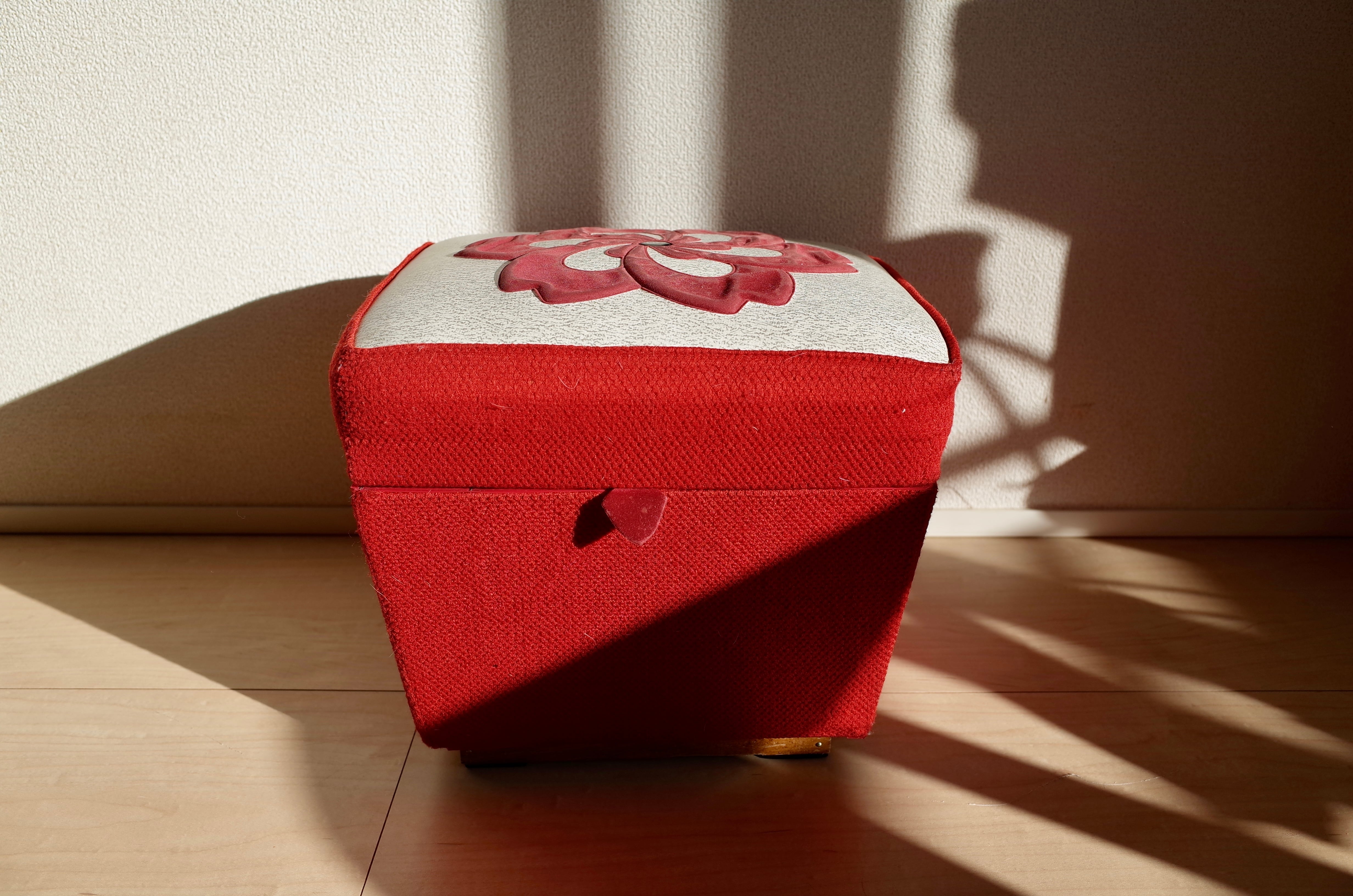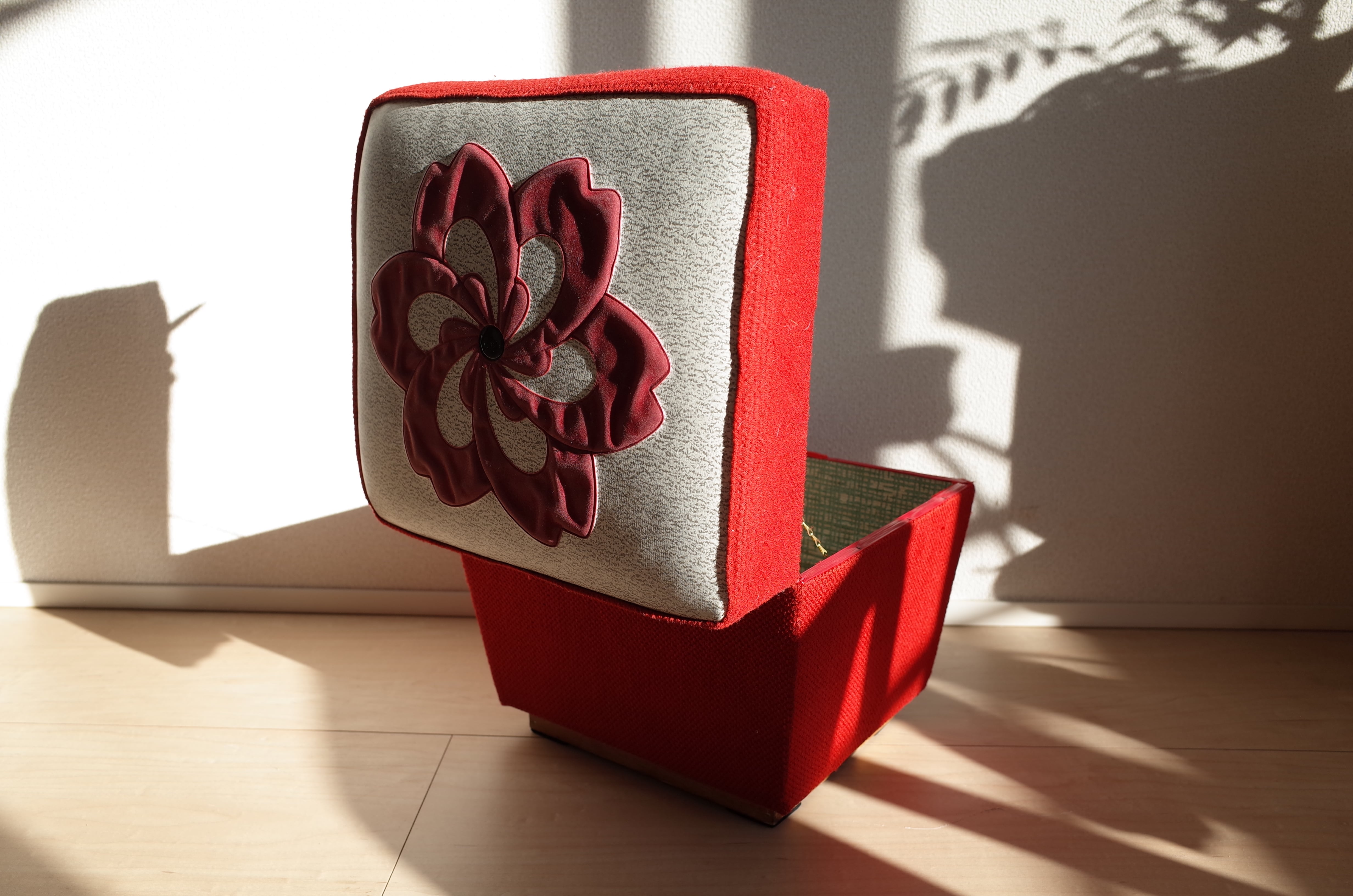 80年代頃の日本製と思われる、座面開閉式のスツール型収納ボックス。