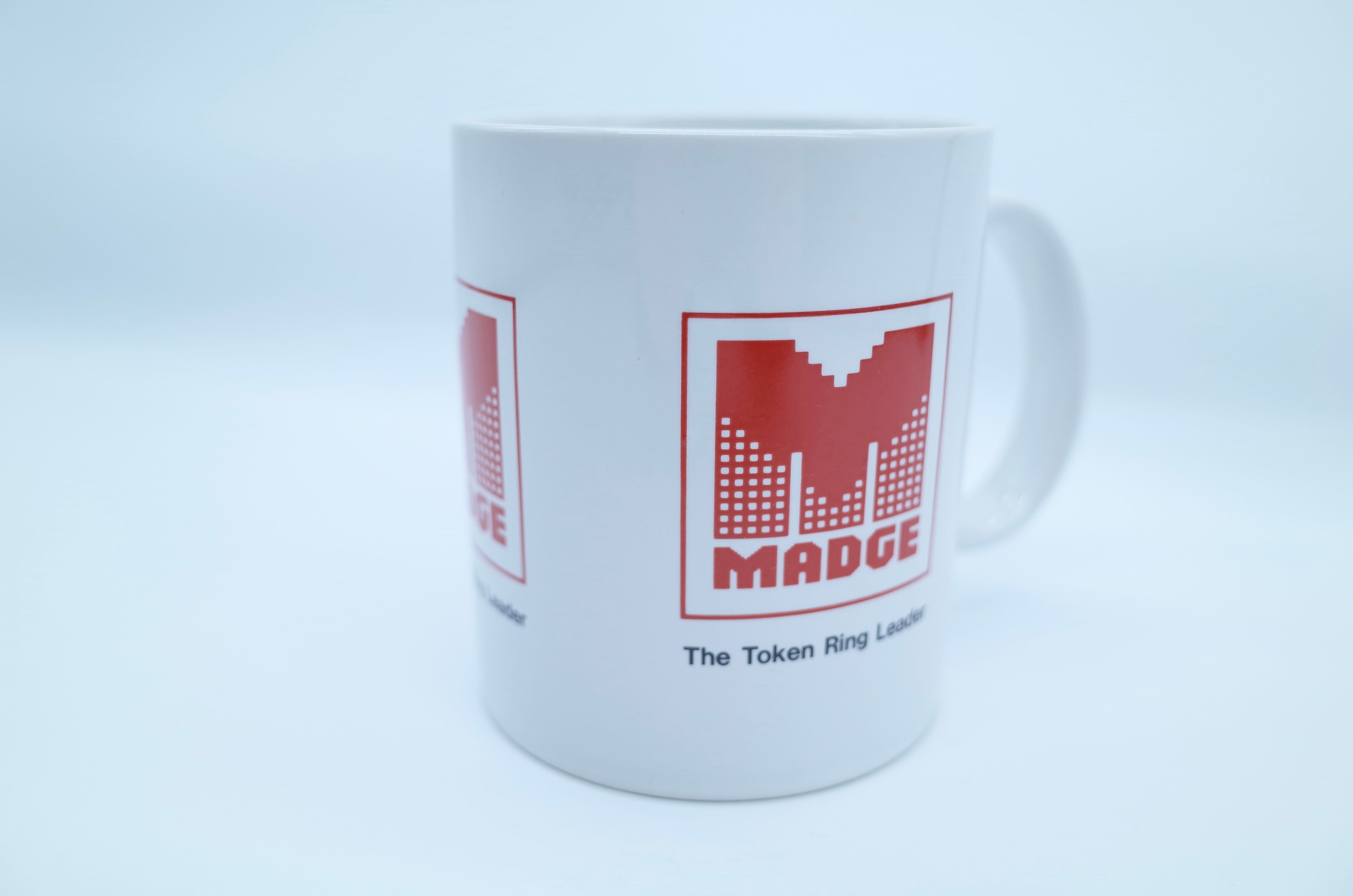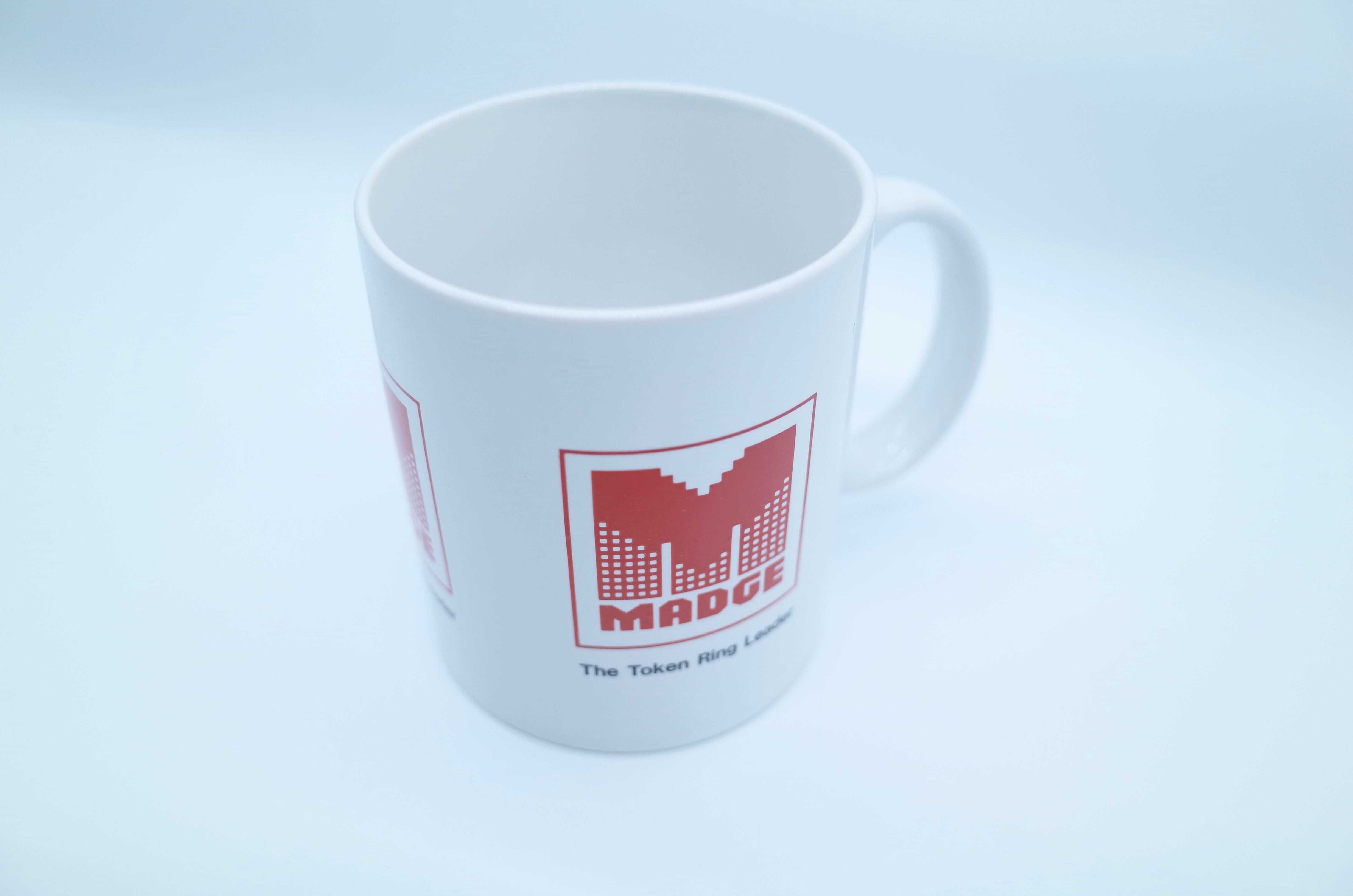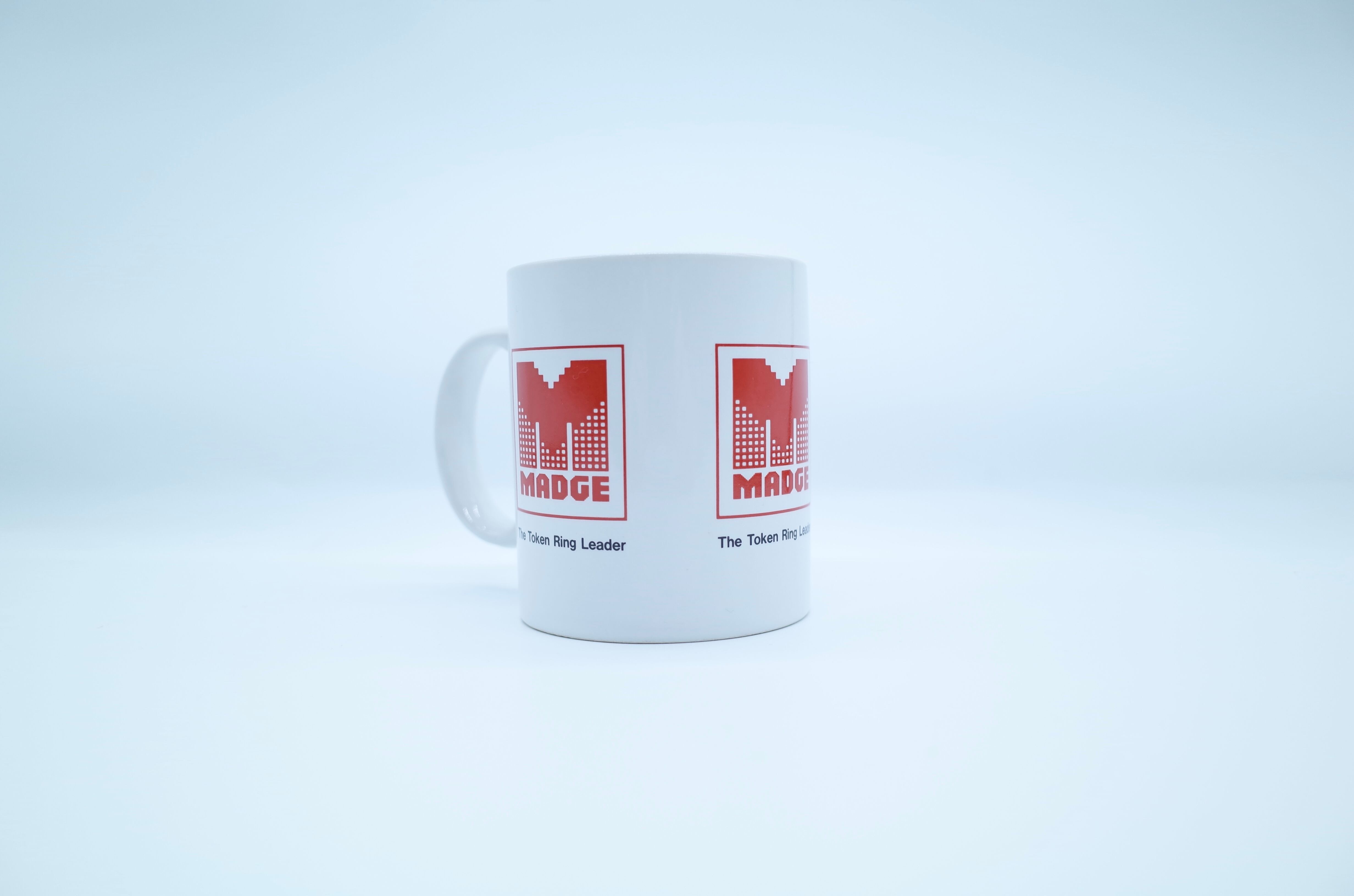 ネットワーク機器メーカー「MADGE」が企業ノベルティとして製作したマグカップ。