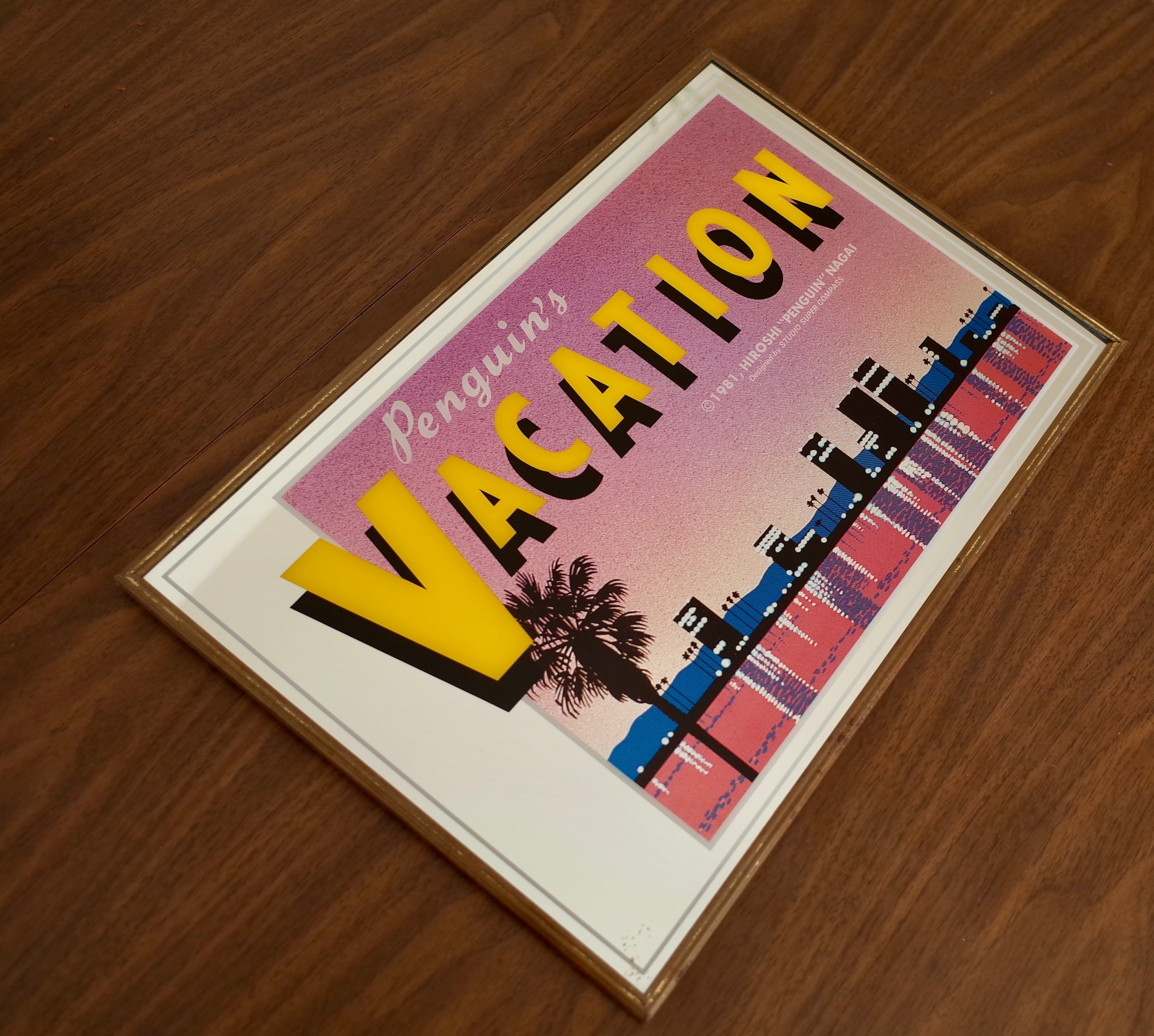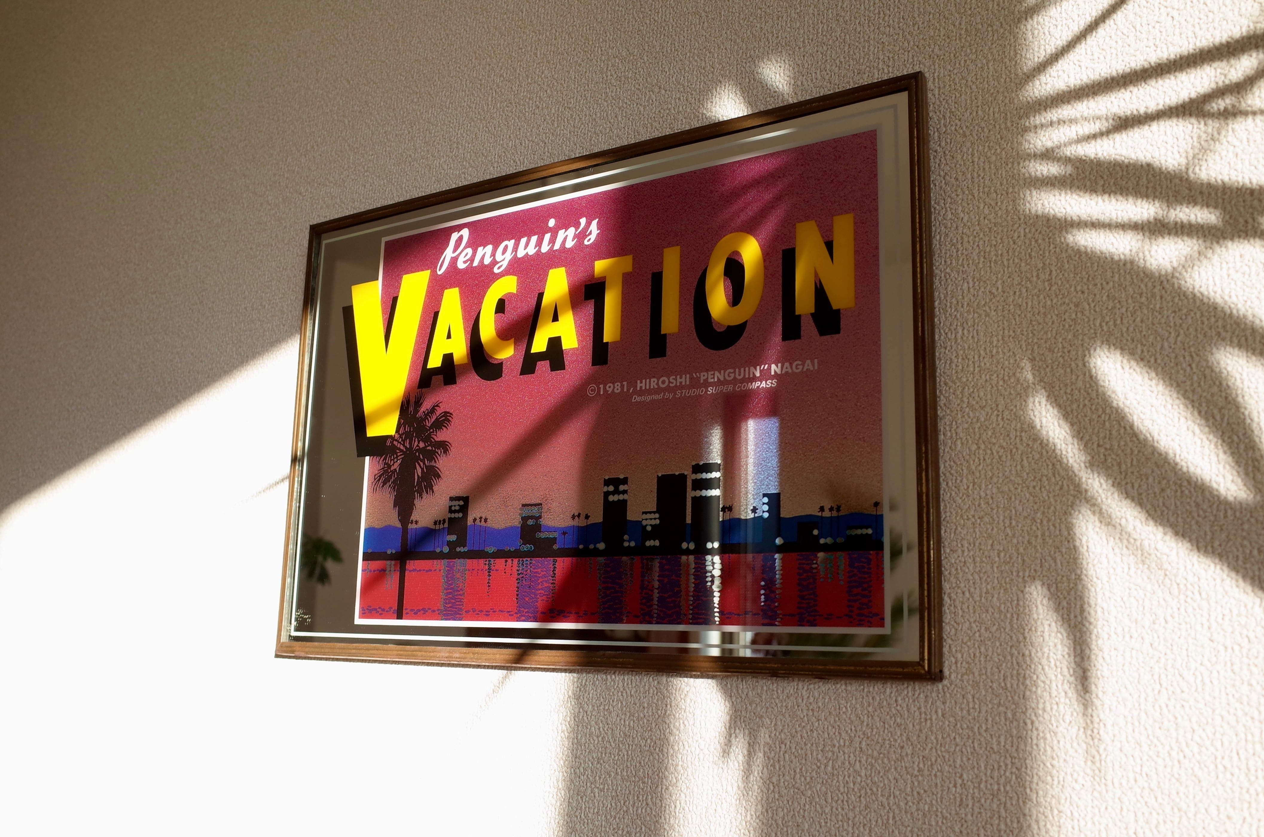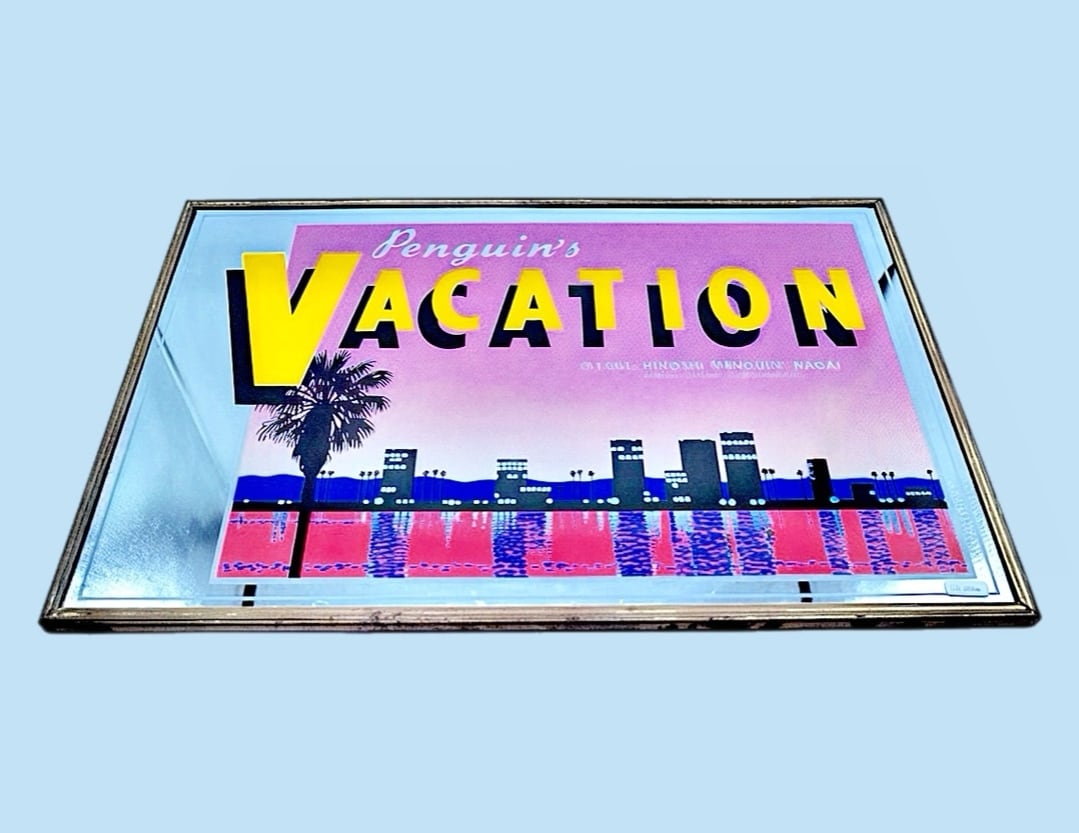 1981年に発表された永井博の代表作『Penguin’s Vacation』をあしらった、当時製造のオリジナルパブミラー。