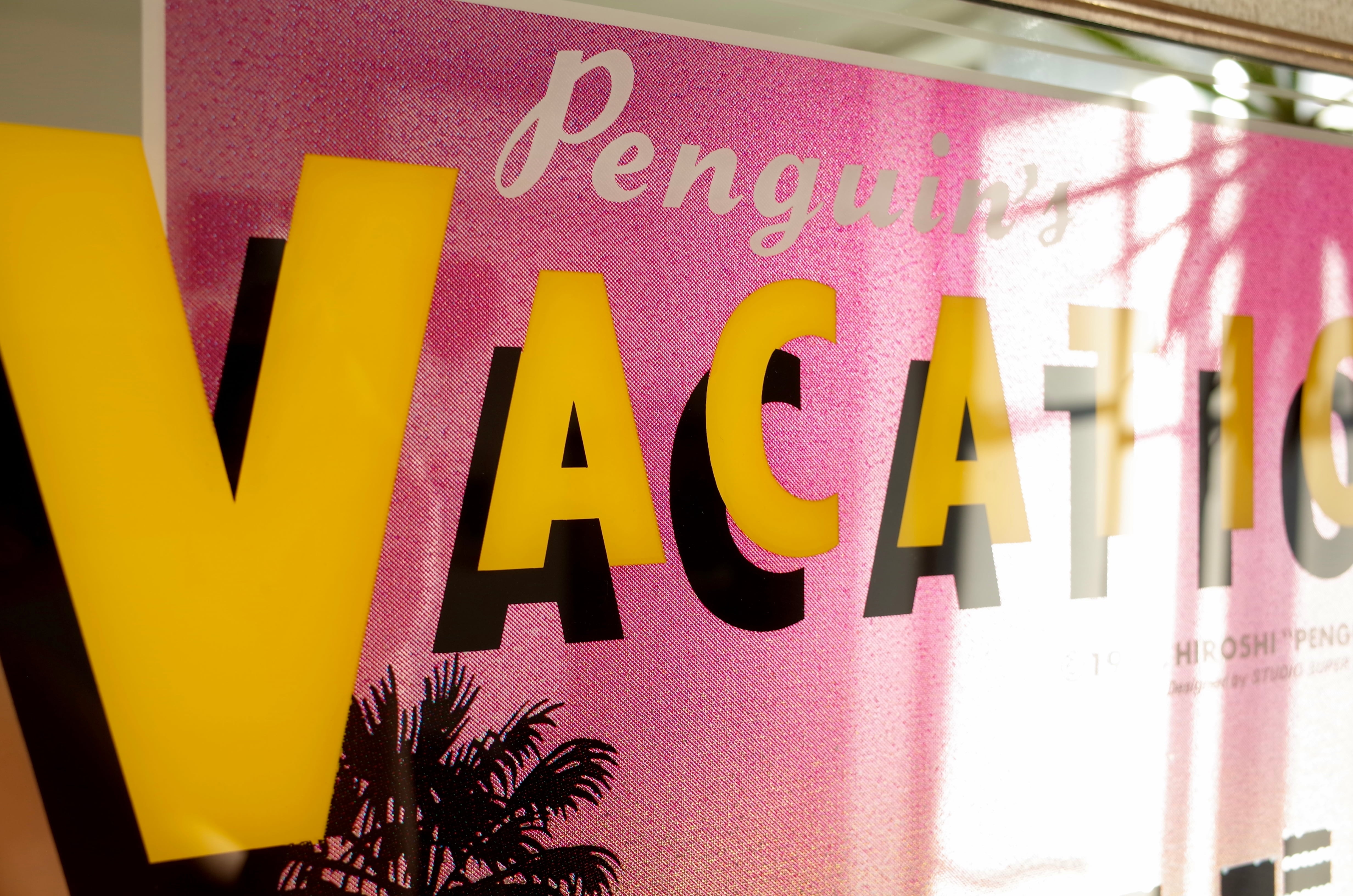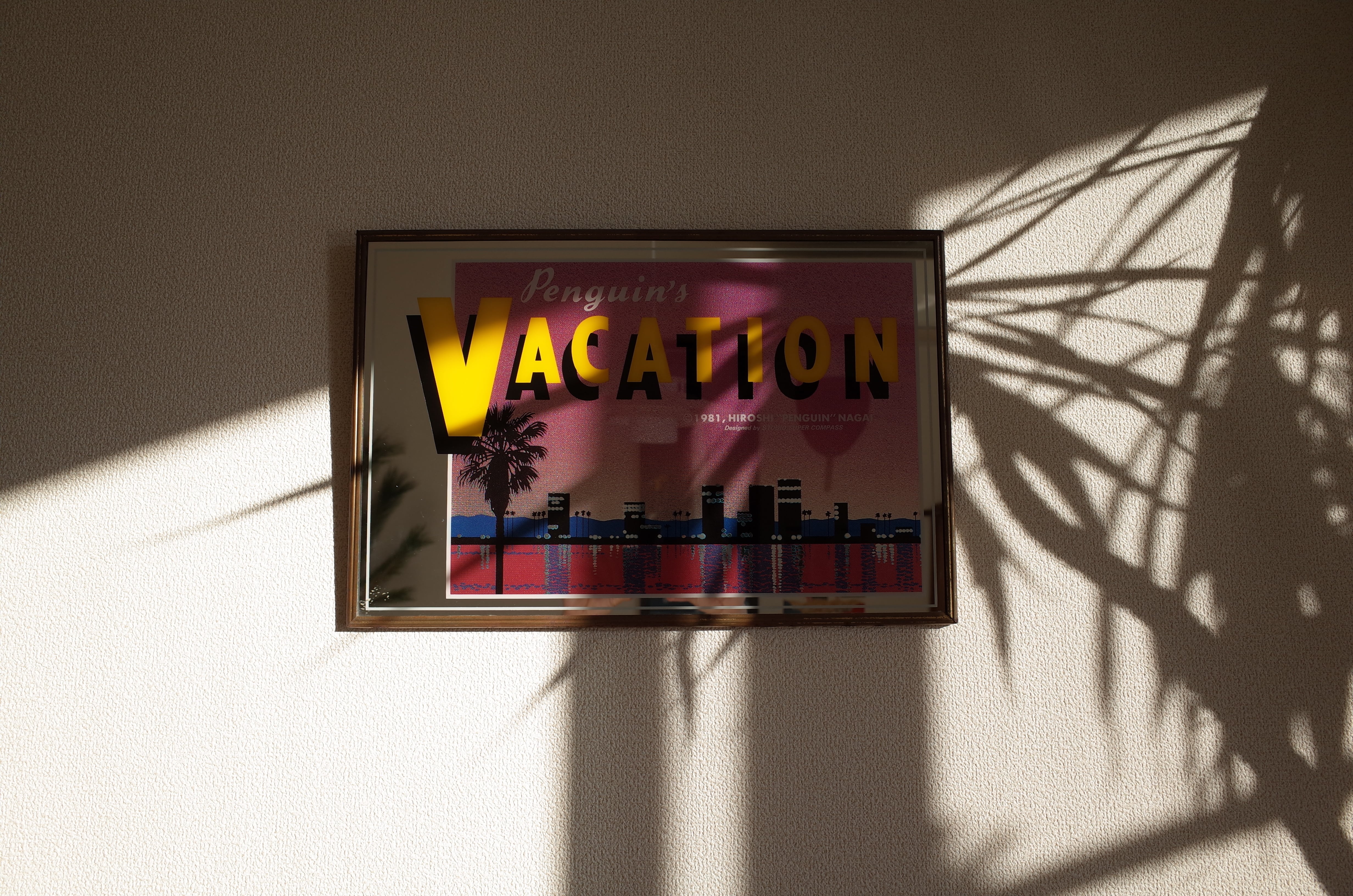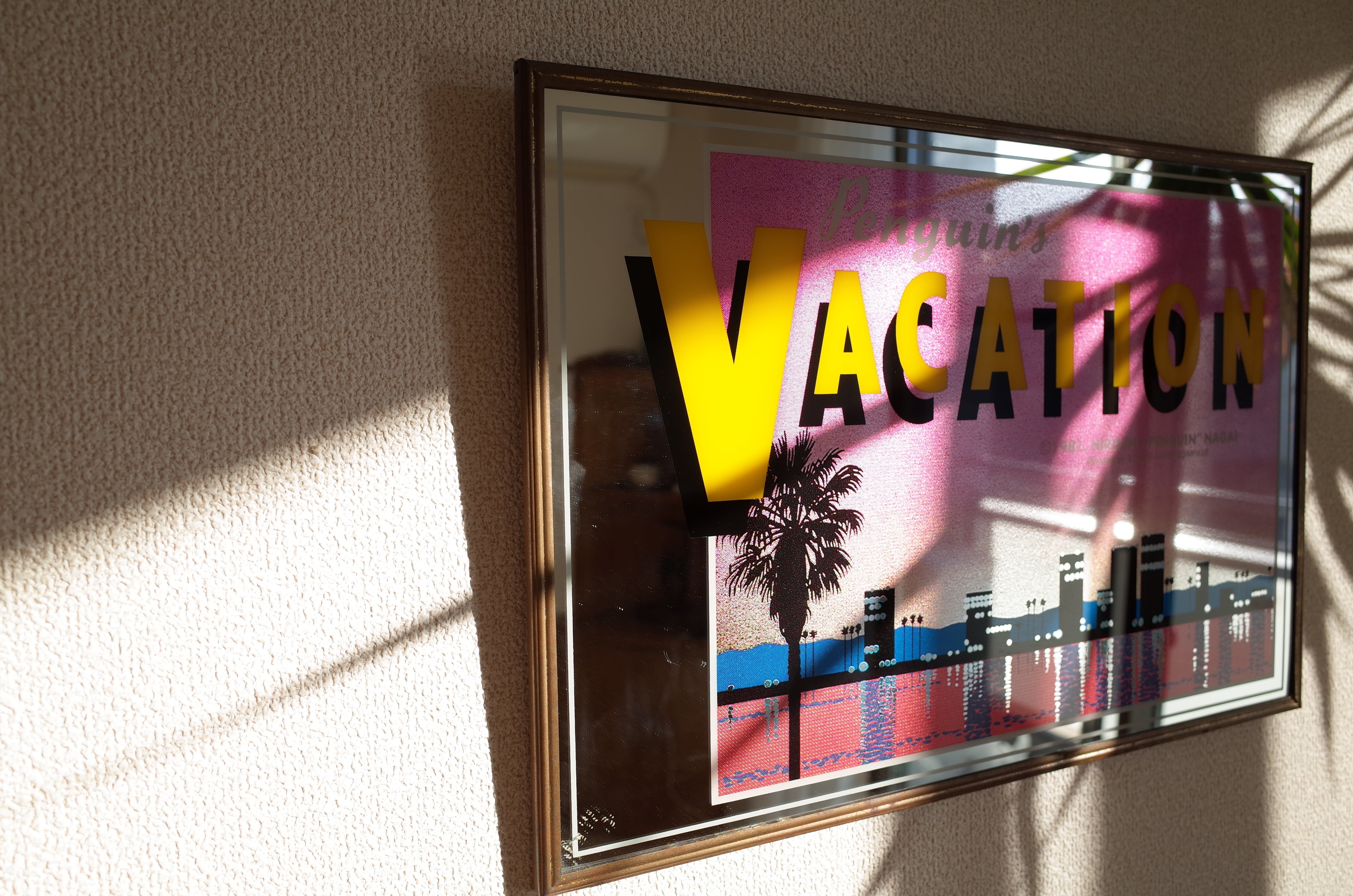 1981年に発表された永井博の代表作『Penguin’s Vacation』をあしらった、当時製造のオリジナルパブミラー。