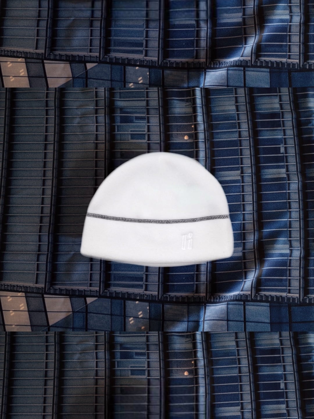 シングルビーニーをベースに、ダブルカフ位置にステッチを入れています。