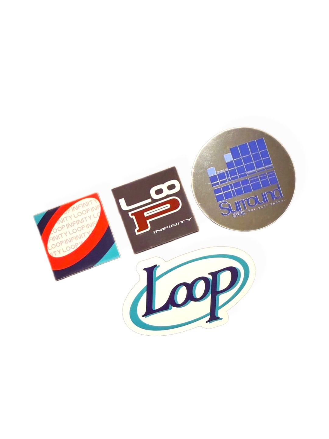 視認性の高い企業ロゴを参照したデザインと、Loop・Surroundのロゴを組み合わせたステッカーパック。