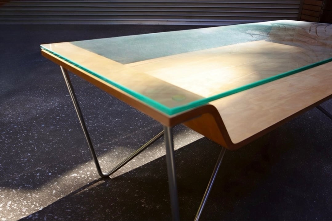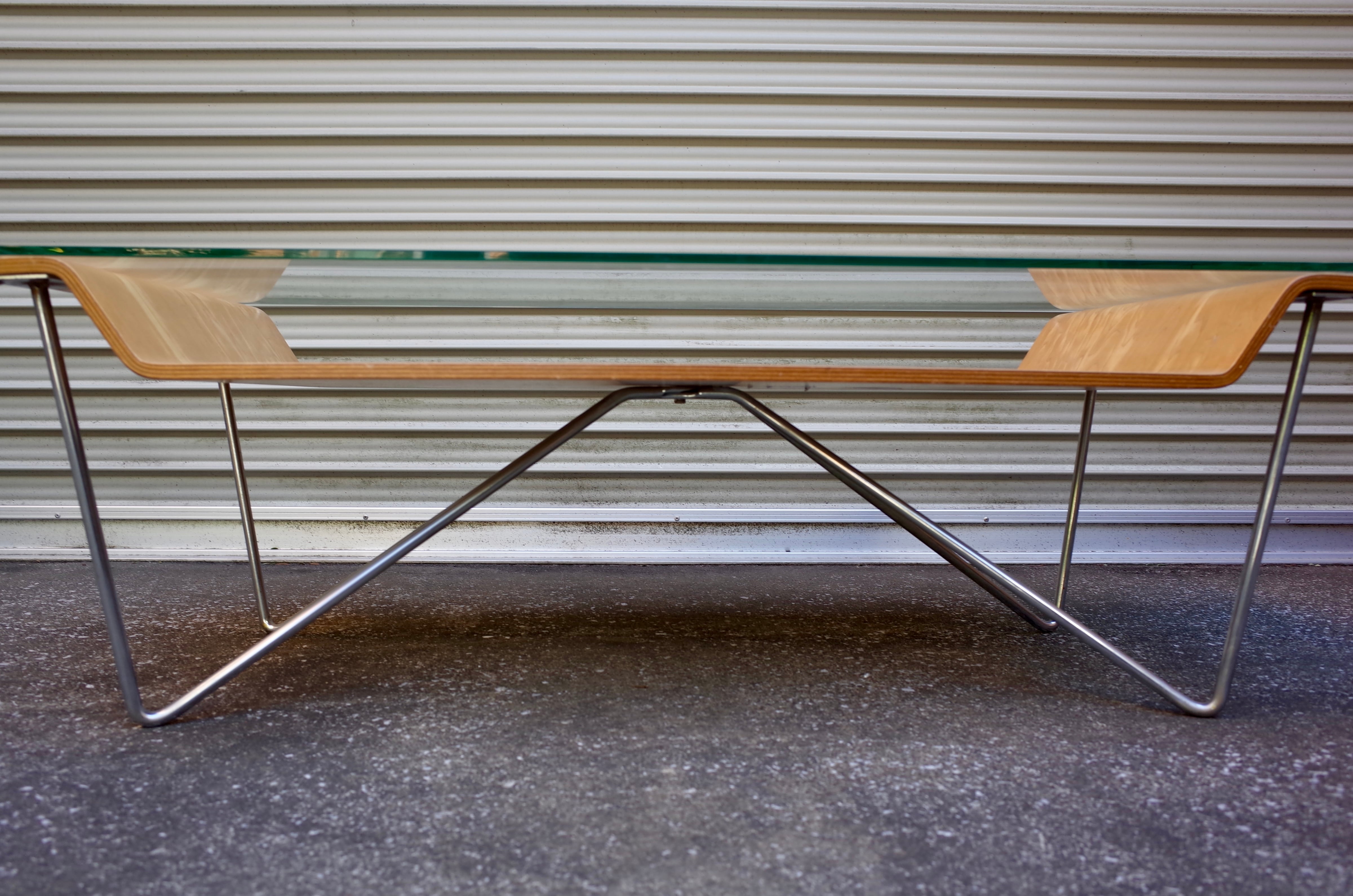 直線的で無駄のない構成が印象的な、ロータイプのウッドテーブル。