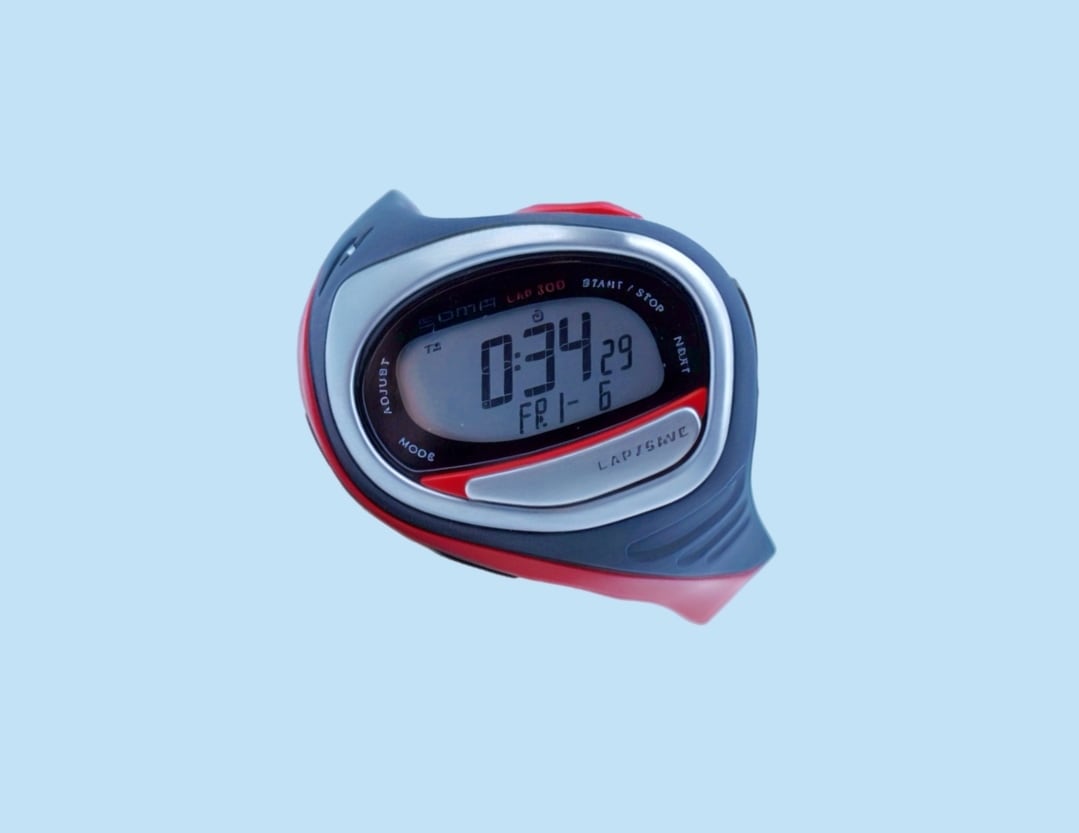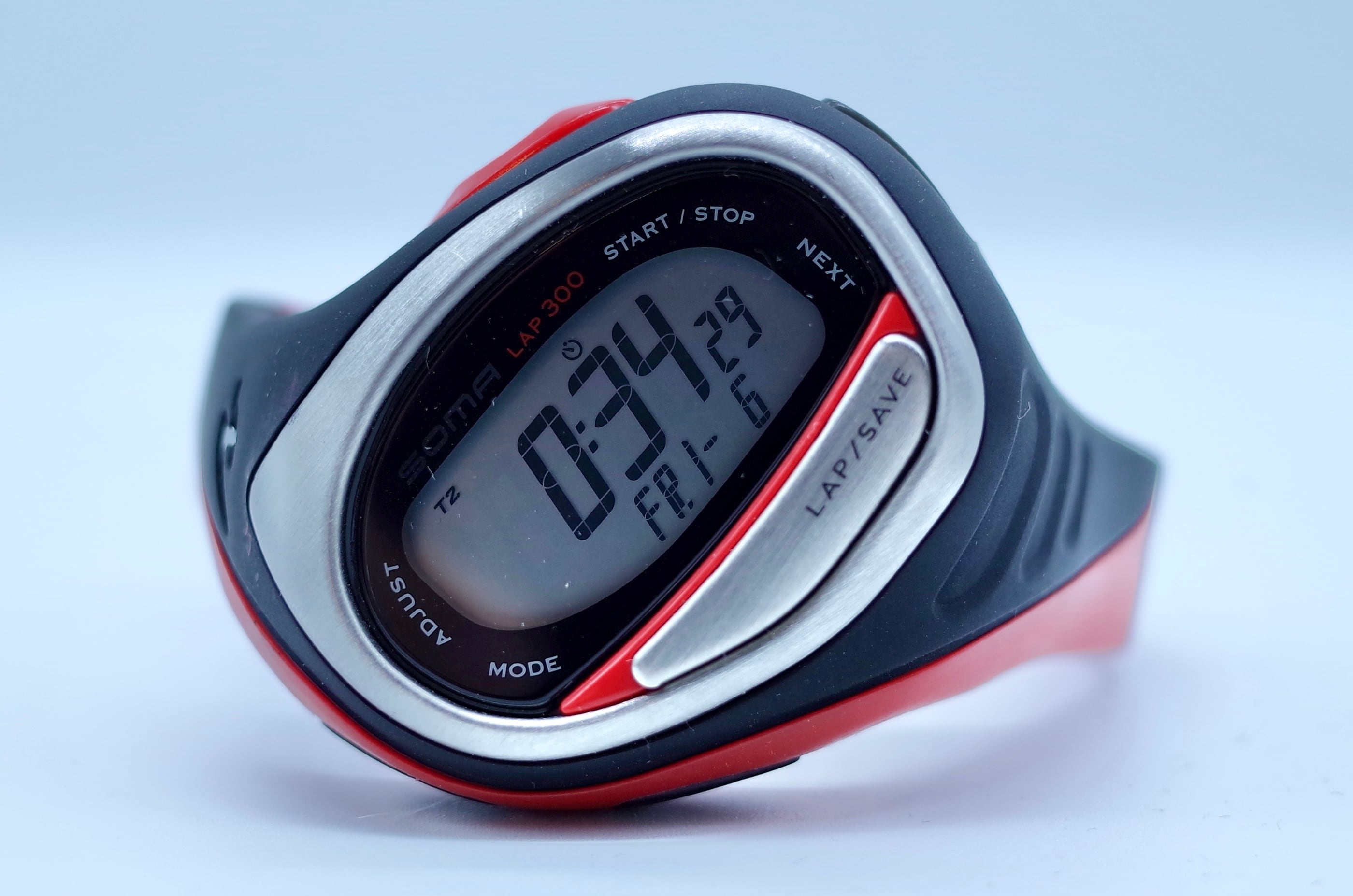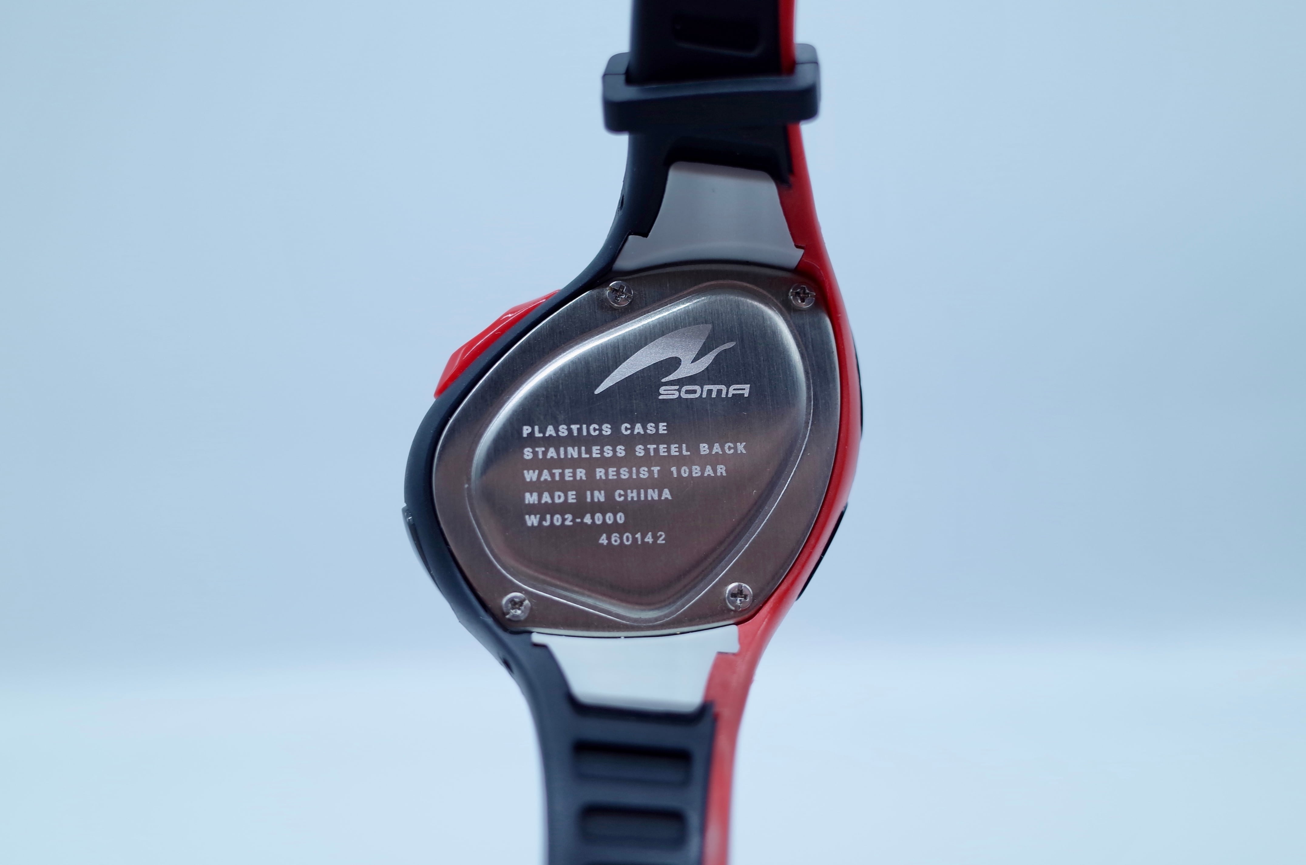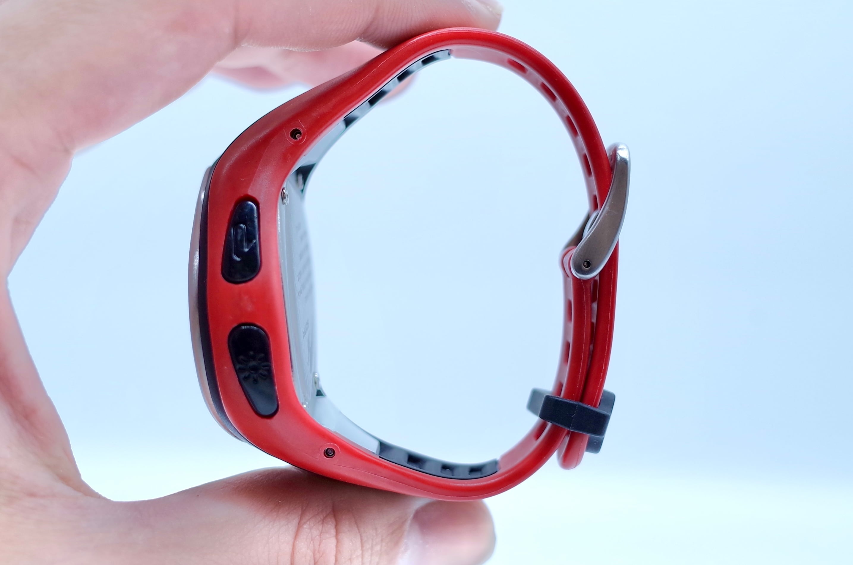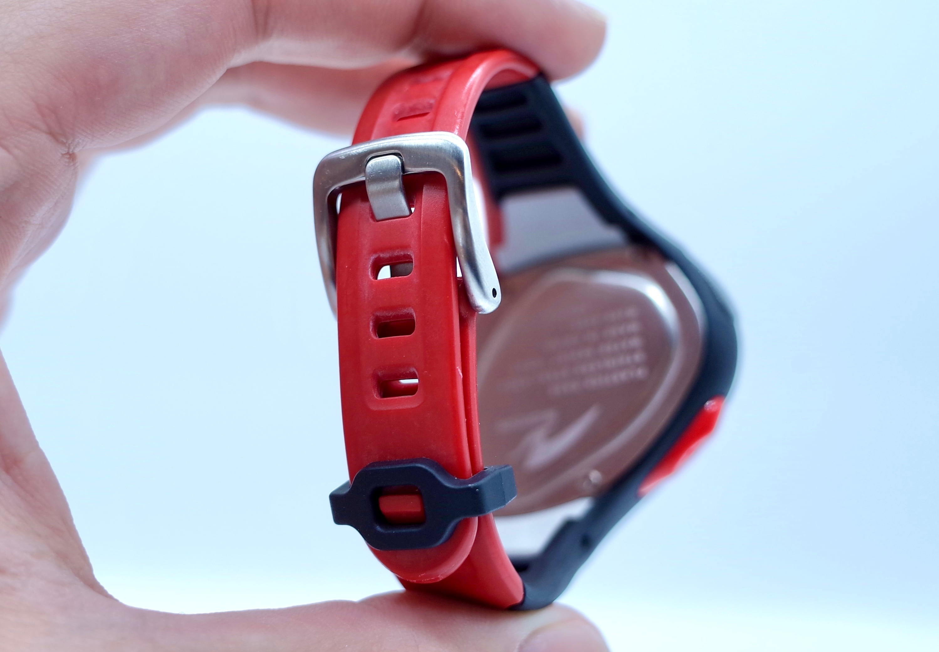 有機的なケースラインと、操作性を意識したボタン配置は、当時のスポーツウォッチらしい設計。