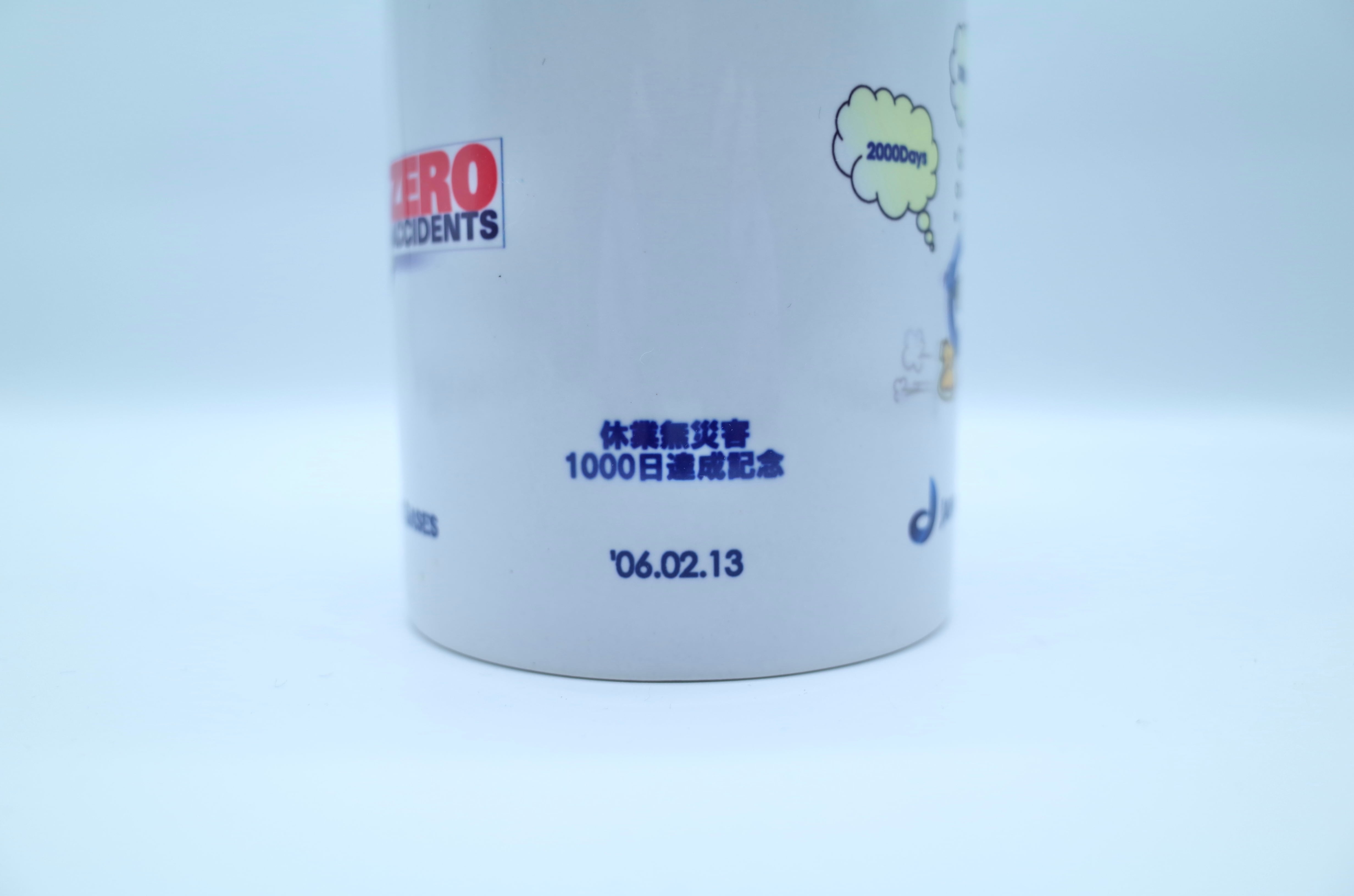 フロントには「ZERO ACCIDENTS」のタイポと、数字をキャラクター化したユニークなイラストを配置。吹き出しの“2000Days / 3000Days”表記など、2000年代企業グラフィックらしいポップな構成が印象的です。