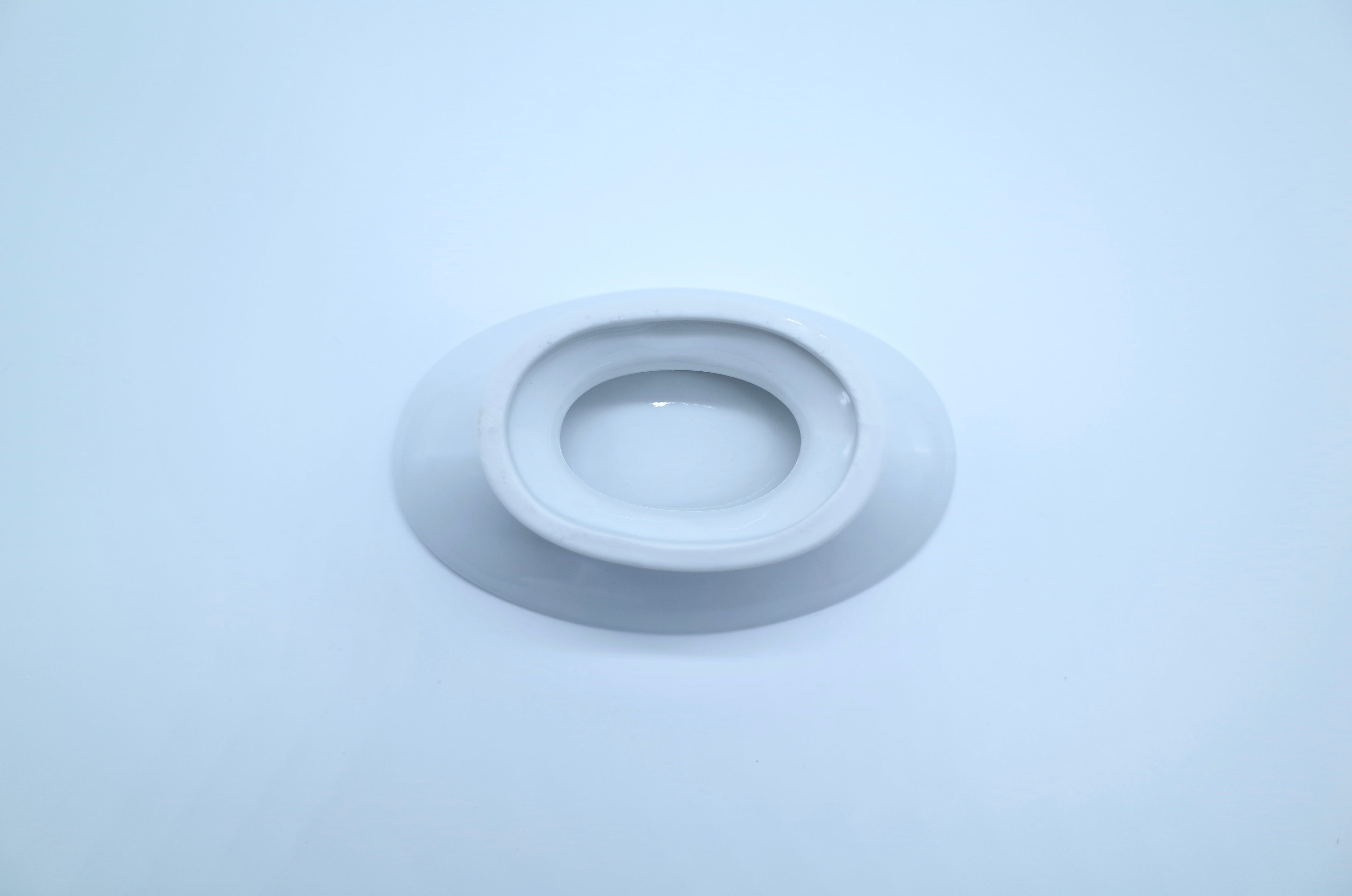 シンプルなホワイトの陶器にブラックのプリントを合わせた構成で、小物トレイとしても使いやすいサイズ感です。
