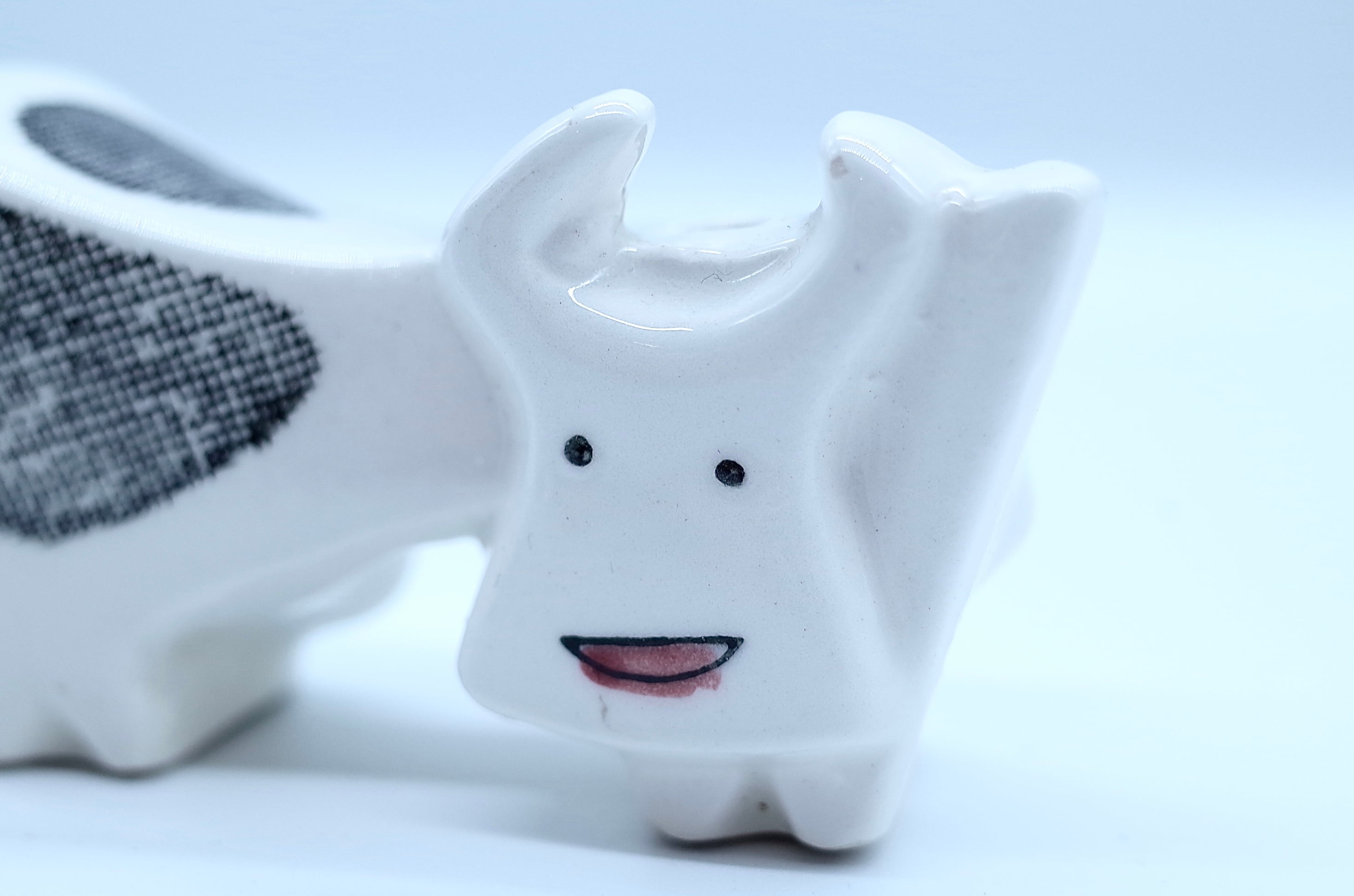 牛のフォルムをモチーフにした小さな陶器オブジェ。