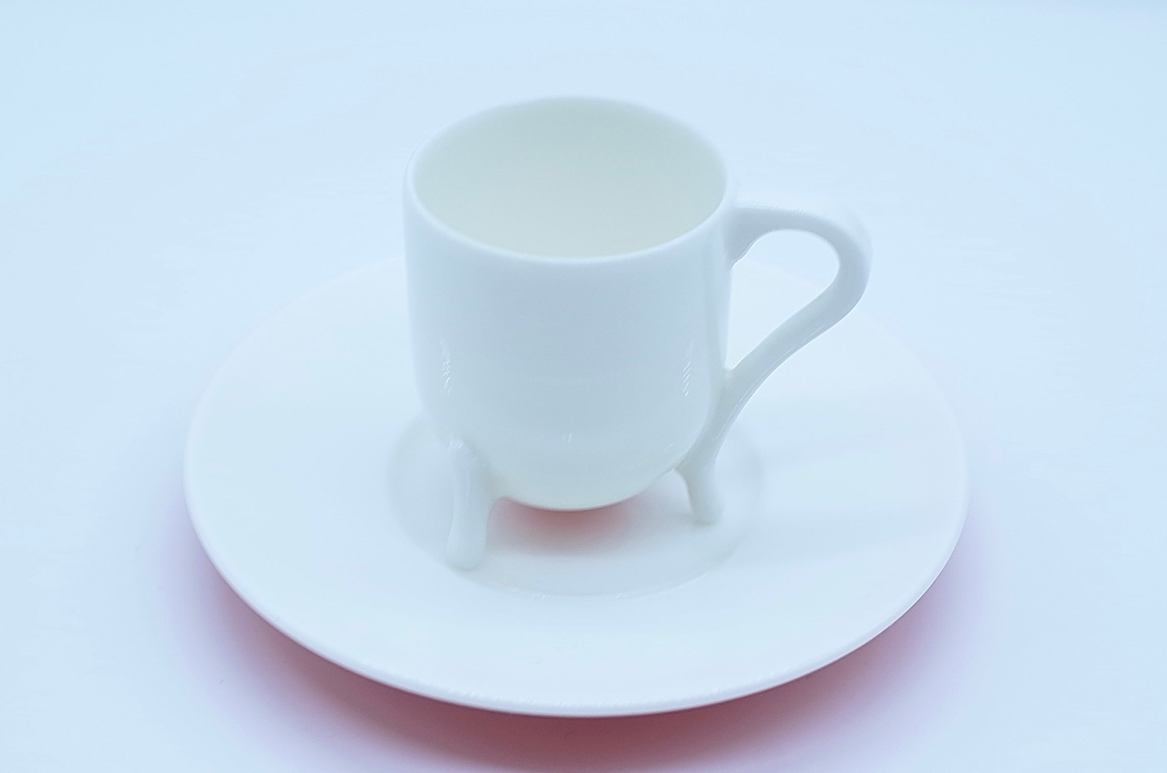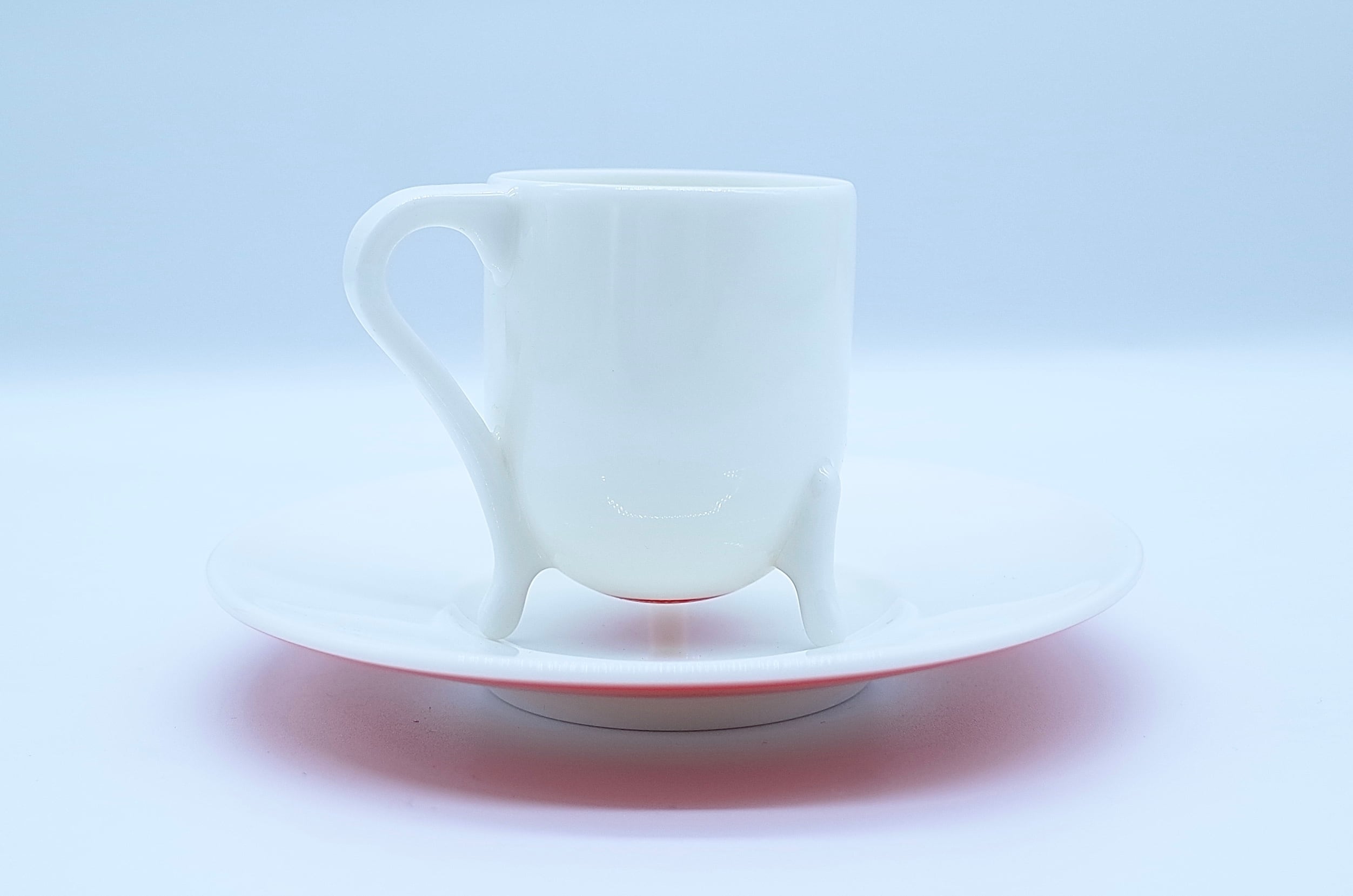 脚のような突起を持つユニークなカップ形状と、フラットで広がりのあるソーサーの組み合わせが特徴です。