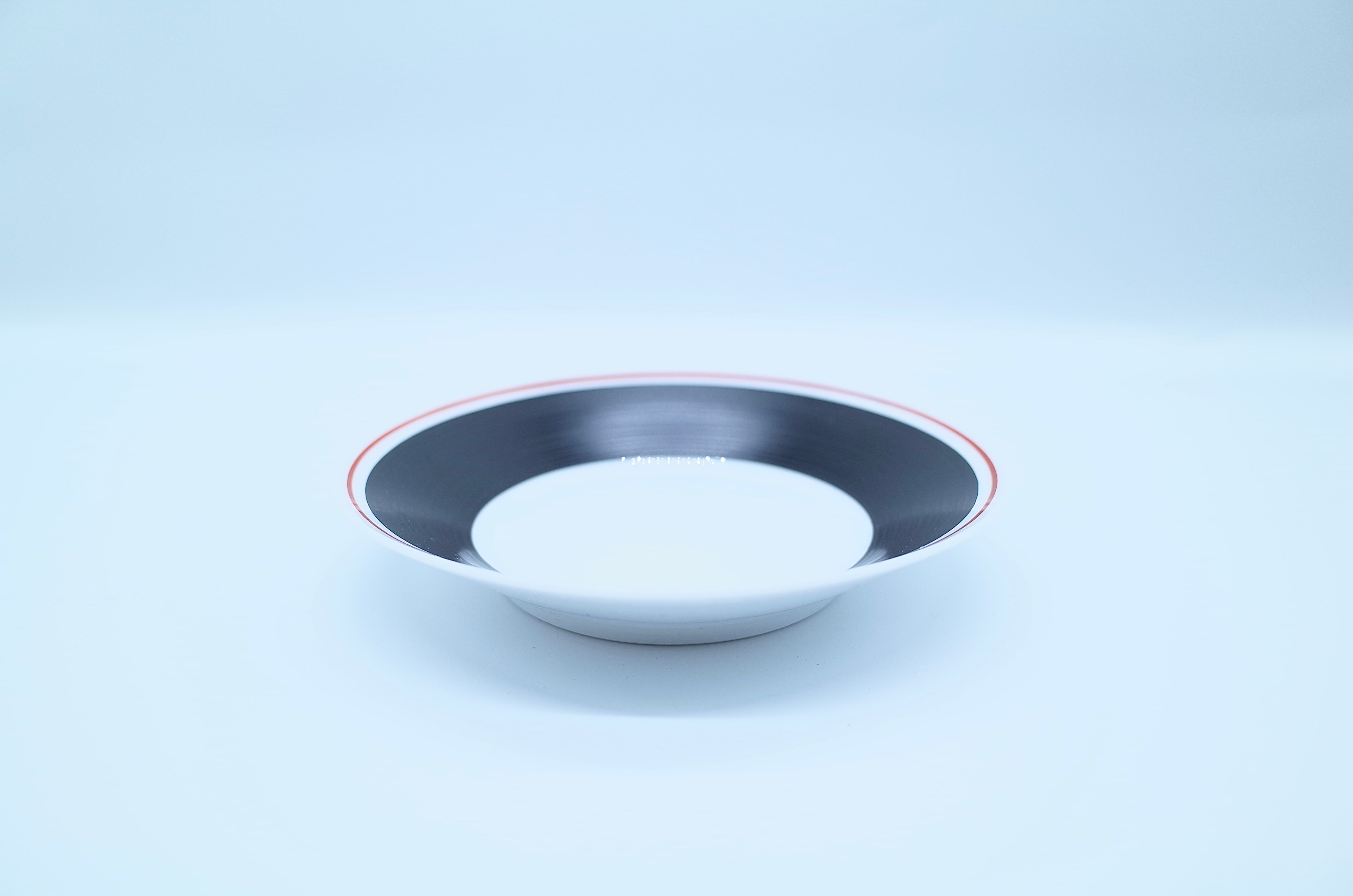 外周に配されたブラックのワイドリムと、その外側をなぞる細いレッドラインの組み合わせが特徴的で、シンプルな構成ながら強い視認性を持つデザインです。
