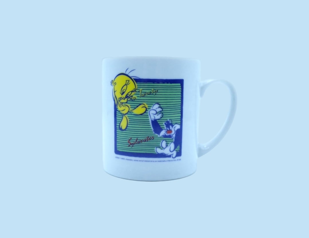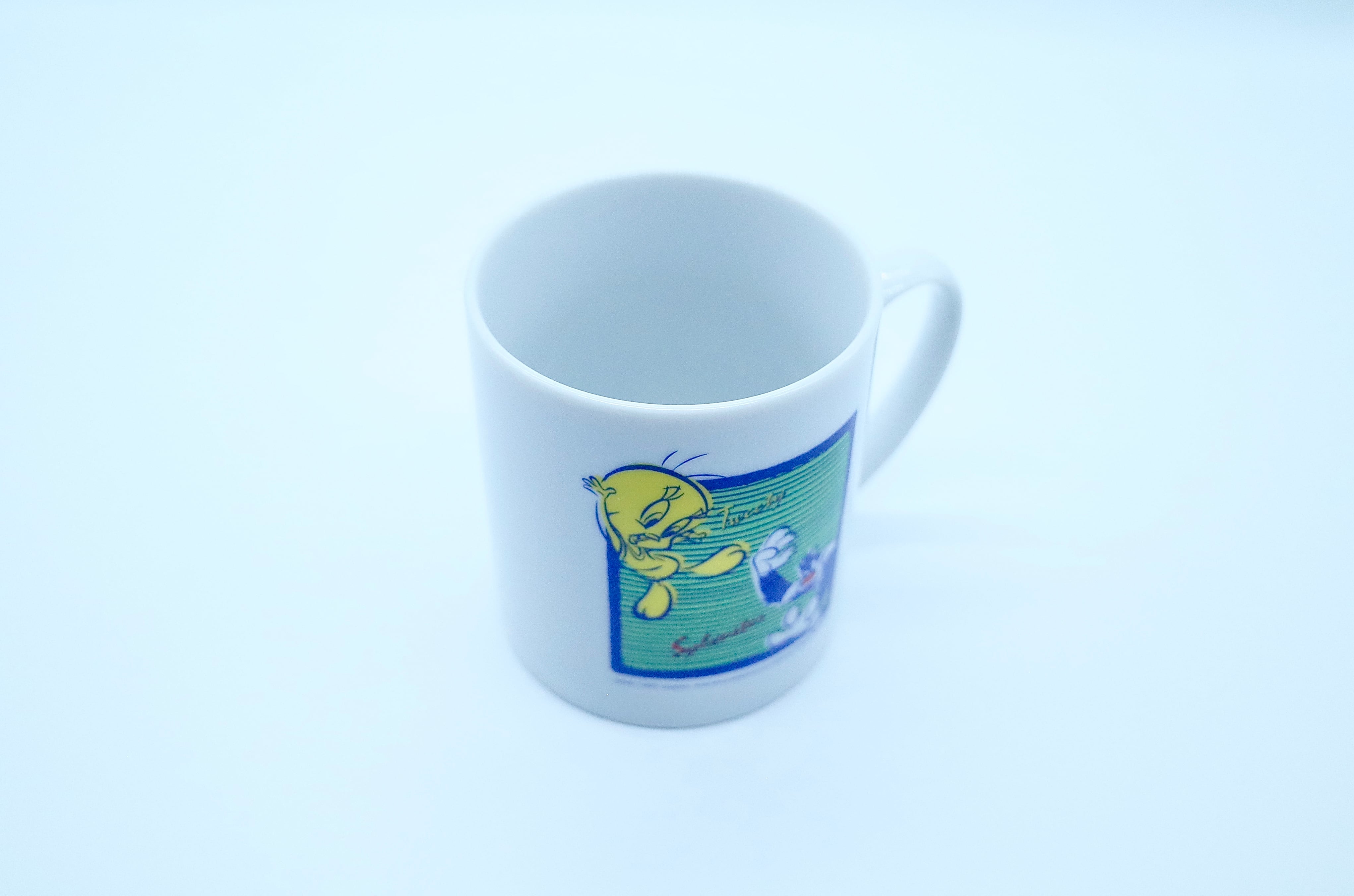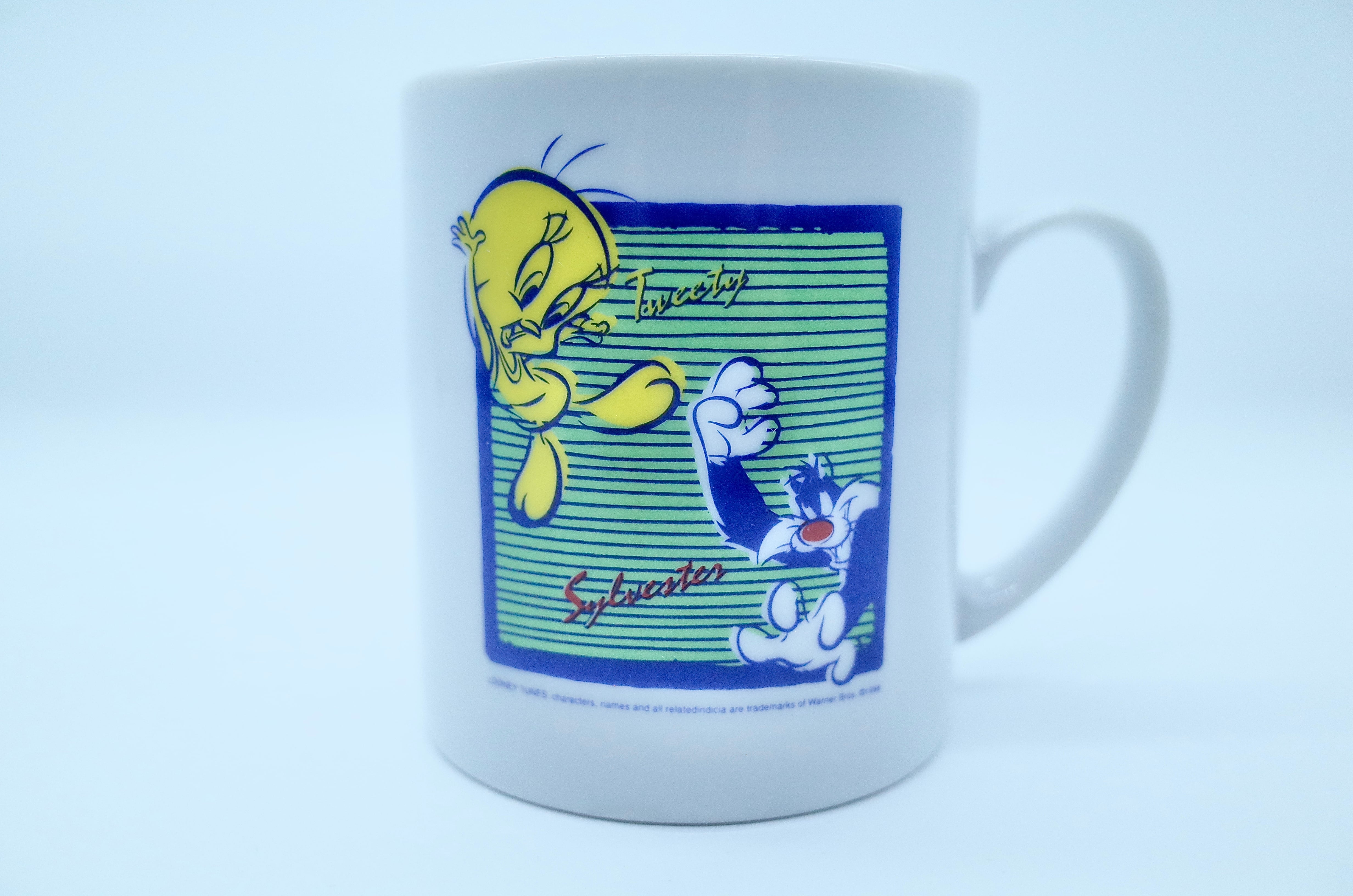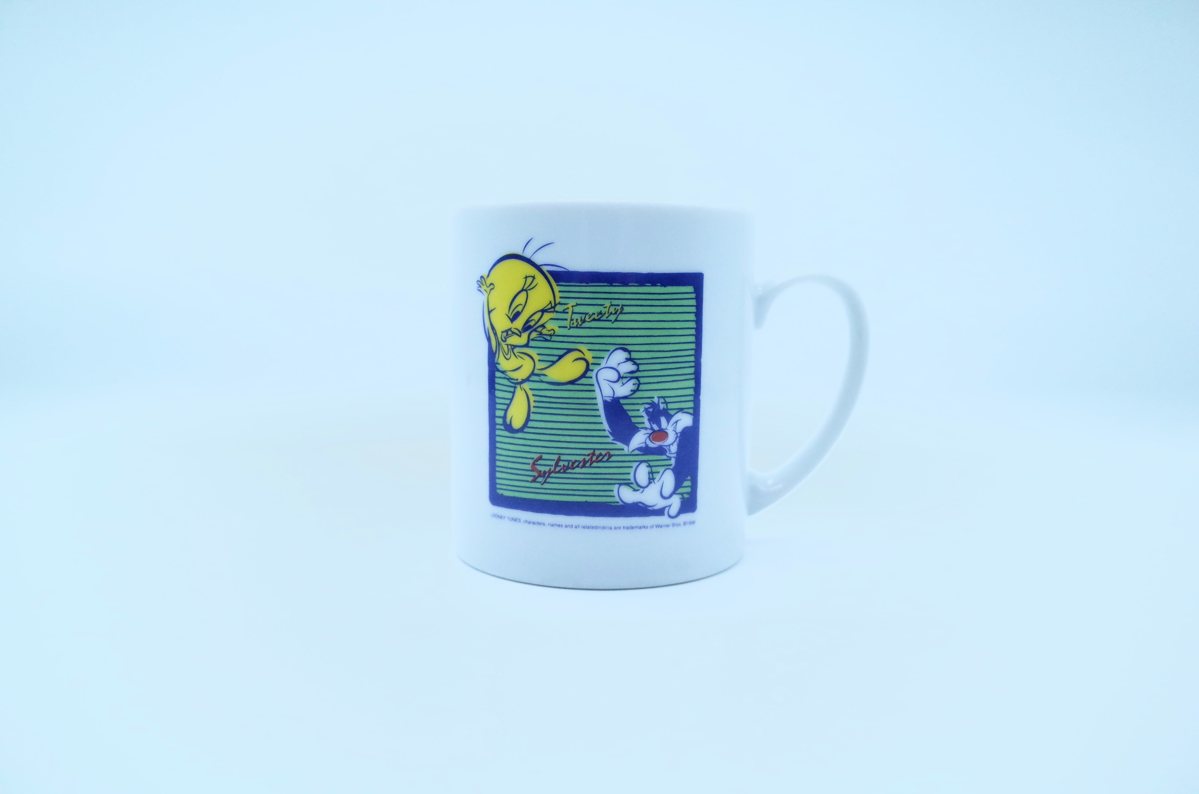トゥイーティーとシルベスターのグラフィックが入ったマグカップ。