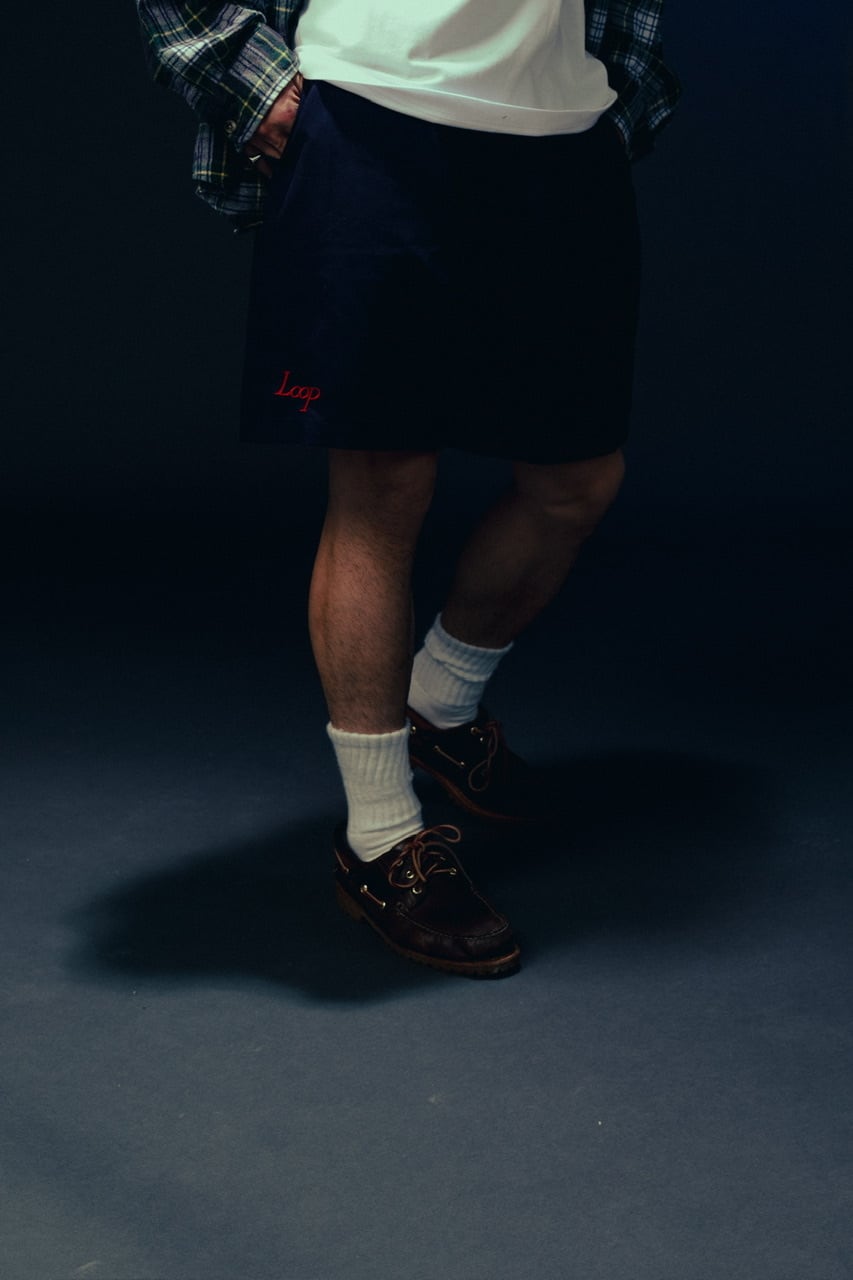 ウエストはドローコード付きのイージー仕様。さりげないロゴ刺繍がアクセントになった、夏に最適な1枚。