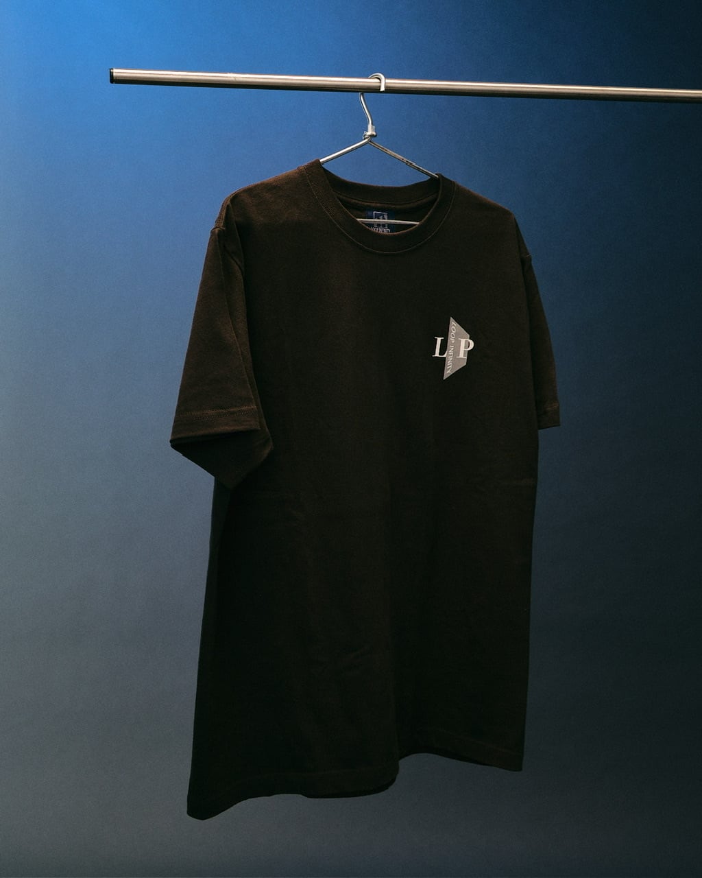 都市の構造物を再構築したような大胆なグラフィックが背面に配置された1枚。